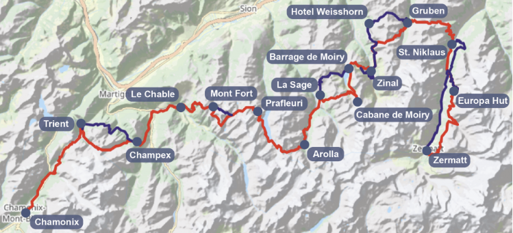 Trekking jest pieszą (tzw. letnią) wersją „Haute Route”, która różni się od lodowcowej (zimowej) opcji, unikając konieczności korzystania ze sprzętu wspinaczkowego. Letni wariant powstał jako odpowiednik zimowego trawersu alpejskiego Chamonix–Zermatt, wytyczonego na początku XX wieku przez członków Klubu Alpejskiego.