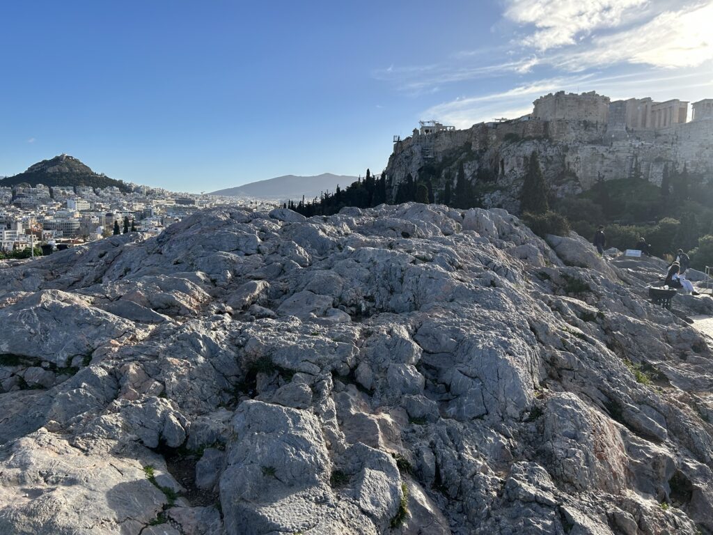 Z kolei Areopag jest skalistym wzgórzem położonym między Pnyksem a Akropolem, jednym z najstarszych miejsc instytucjonalnych Aten. Już w epoce archaicznej i klasycznej obradowała tu Rada Areopagu, sąd zajmujący się najpoważniejszymi przestępstwami prawa publicznego, w tym zabójstwami, a także sprawami o charakterze religijnym. W przeciwieństwie do Pnyksu nie była to przestrzeń zgromadzeń masowych, lecz miejsce elitarnej jurysdykcji, związanej z tradycją i autorytetem prawa zwyczajowego.