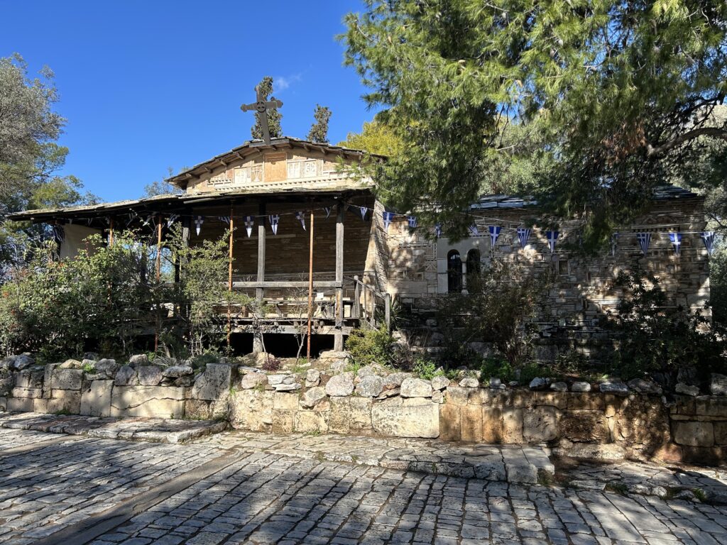 Mniej szczęścia miał kościół św. Katarzyny (Agia Aikaterini), pierwotnie dedykowany św. Teodorowi. Bryła pochodzi z XI w., jednak obecny kształt jest efektem wielofazowej rozbudowy, obejmującej późny okres bizantyjski i czasy osmańskie. Świątynia łączy elementy krzyżowo-kopułowe z rozbudowanym narteksem i obejściami. Dodatki zatarły bizantyjski charakter kościoła, a stare freski przemalowano pod koniec XIX w.