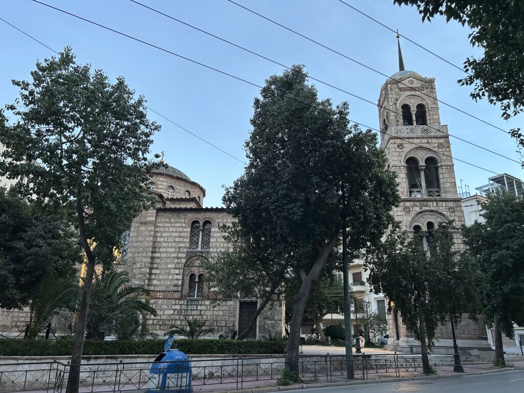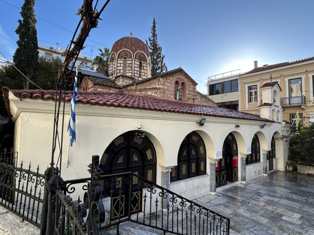 Kościół Przemienienia Pańskiego (Agia Metamorfosi tou Sotiros) należy do grupy ateńskich świątyń o średniobizantyjskim rodowodzie, których dzisiejsza forma również jest efektem XIX-wiecznych przekształceń po zniszczeniach greckiej wojny o niepodległość (1821-1830). Oryginalna budowla powstała najpewniej w XI–XII w., natomiast obecna, symetryczna bryła z dwiema dzwonnicami i uproszczoną elewacją odpowiada estetyce neobizantyjskiej epoki odbudowy nowożytnego państwa greckiego. Z pierwotnej budowli zachowały się jedynie trzy absydy i sklepienia ponad nimi.