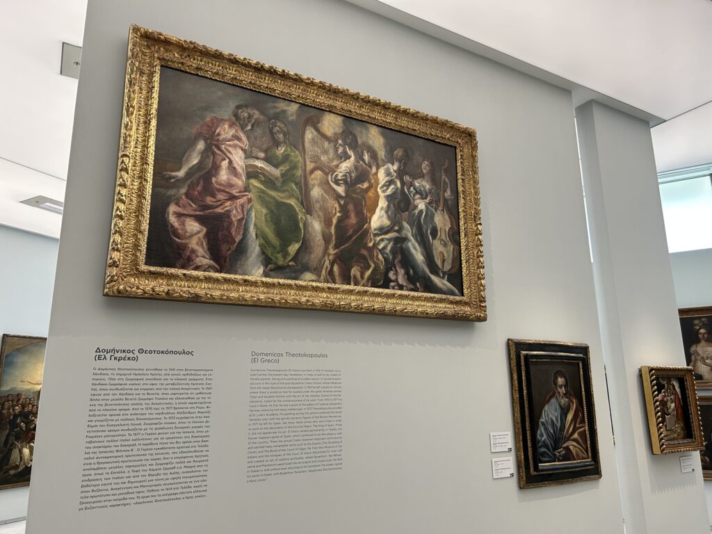 Obecność El Greco w zbiorach galerii ma znaczenie symboliczne: to powrót artysty urodzonego na Krecie (w weneckiej Kandii) do greckiego kontekstu kulturowego. Pokazywane dzieło pochodzi z jego dojrzałego okresu i reprezentuje charakterystyczny styl wypracowany już po osiedleniu się w Toledo, gdzie od 1577 r. stworzył swój najbardziej rozpoznawalny język malarski. Wydłużone, dynamiczne sylwetki, napięcie między materią a duchowością oraz chłodna, niemal metafizyczna kolorystyka są efektem syntezy trzech tradycji: postbizantyjskiej szkoły kreteńskiej, weneckiego koloryzmu oraz rzymskiego manieryzmu. Toledo dało El Grecowi stabilne zaplecze mecenatu, którego nie znalazł ani w Rzymie, ani na dworze Filipa II w Eskurialu.