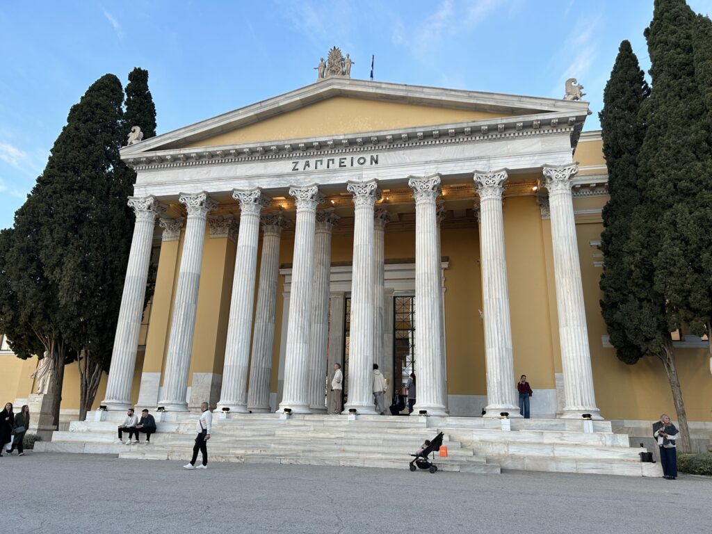 Zappeion wzniesiono w latach 1874–1888 jako reprezentacyjną halę wystawową młodego państwa greckiego. Projekt przygotował duński architekt Theophil Hansen — ten sam, który współtworzył klasycystyczną „trylogię ateńską” (poniżej). Monumentalny portyk z kolumnadą nawiązuje wprost do architektury antycznej, zaś budynek pełnił funkcje ekspozycyjne, ceremonialne i państwowe. Zappeion odegrał kluczową rolę podczas pierwszych nowożytnych igrzysk olimpijskich w 1896 r., służąc jako centrum organizacyjne i przestrzeń spotkań. W XX w. był areną wydarzeń politycznych i dyplomatycznych — w 1979 r. podpisano akt przystąpienia Grecji do Wspólnot Europejskich.