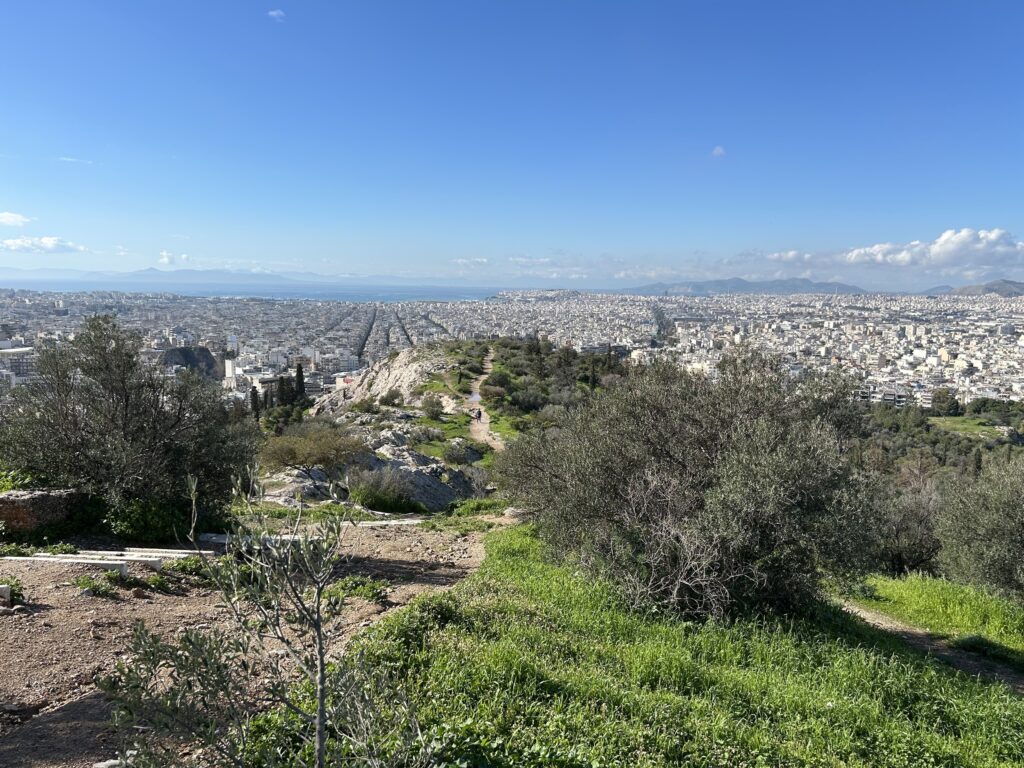 Zielonym akcentem są także wzgórza, w tym Wzgórze Muz (Filopapposa). Nazwa nawiązuje do antycznej tradycji wiązania tego miejsca z kultem Muz, natomiast współczesne miano pochodzi od rzymskiego monumentu wzniesionego ku czci Gajusza Juliusza Antiocha Epifanesa Filopapposa (II w. n.e.). Wzgórze zachowało półnaturalny charakter, z siecią ścieżek pieszych i widokami na Akropol, Pireus i Zatokę Sarońską.