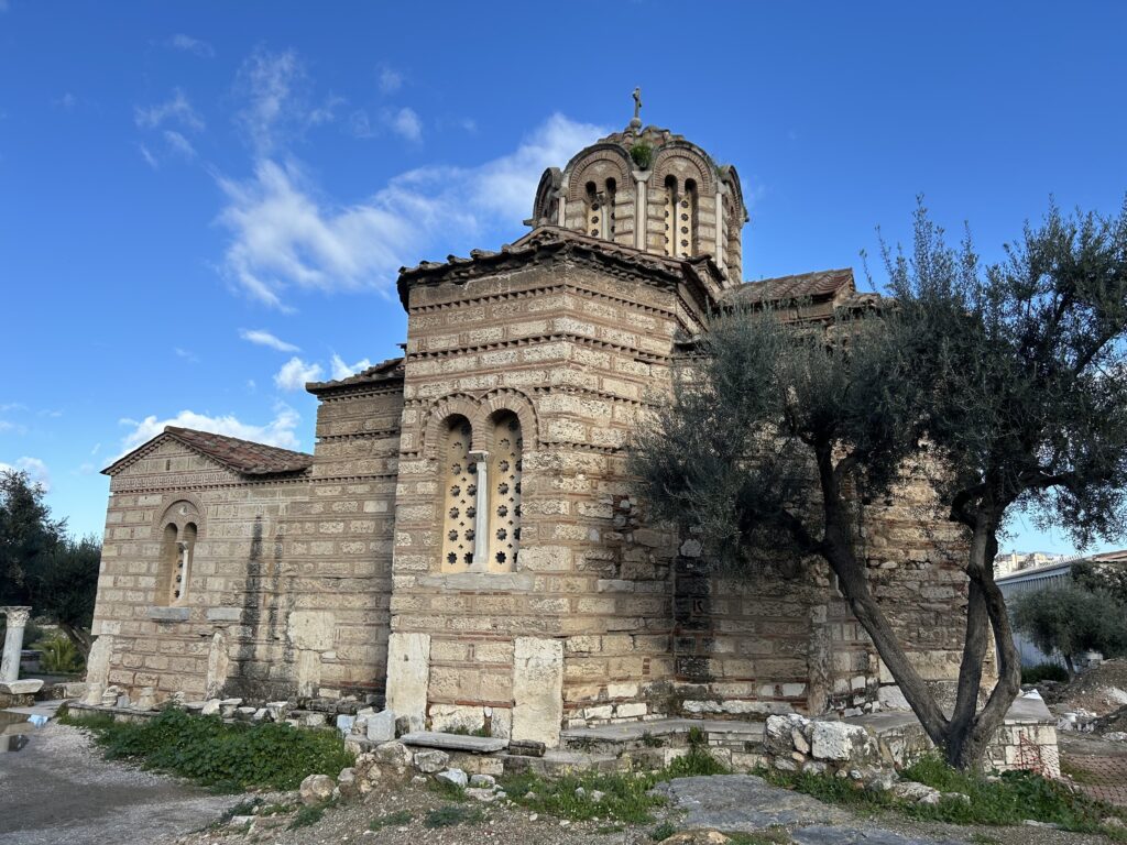 Kościół Świętych Apostołów (Agioi Apostoloi) na południowo-zachodnim skraju Agory Ateńskiej jest jednym z najważniejszych zachowanych zabytków średniobizantyńskich Aten. Został wzniesiony pod koniec X w., na miejscu wcześniejszych budowli rzymskich, których elementy wtórnie wykorzystano w murach świątyni. Jest jednym z nielicznych obiektów na Agorze, który zachował autentyczną substancję murów. Świątynia reprezentuje typ krzyża wpisanego w kwadrat z centralną kopułą wspartą na czterech filarach. Charakterystyczne są ceramiczne zdobienia elewacji, pasy ceglane oraz dekoracyjne arkadki, typowe dla architektury tzw. szkoły konstantynopolitańskiej, obecnej także w Grecji środkowej w tym okresie.