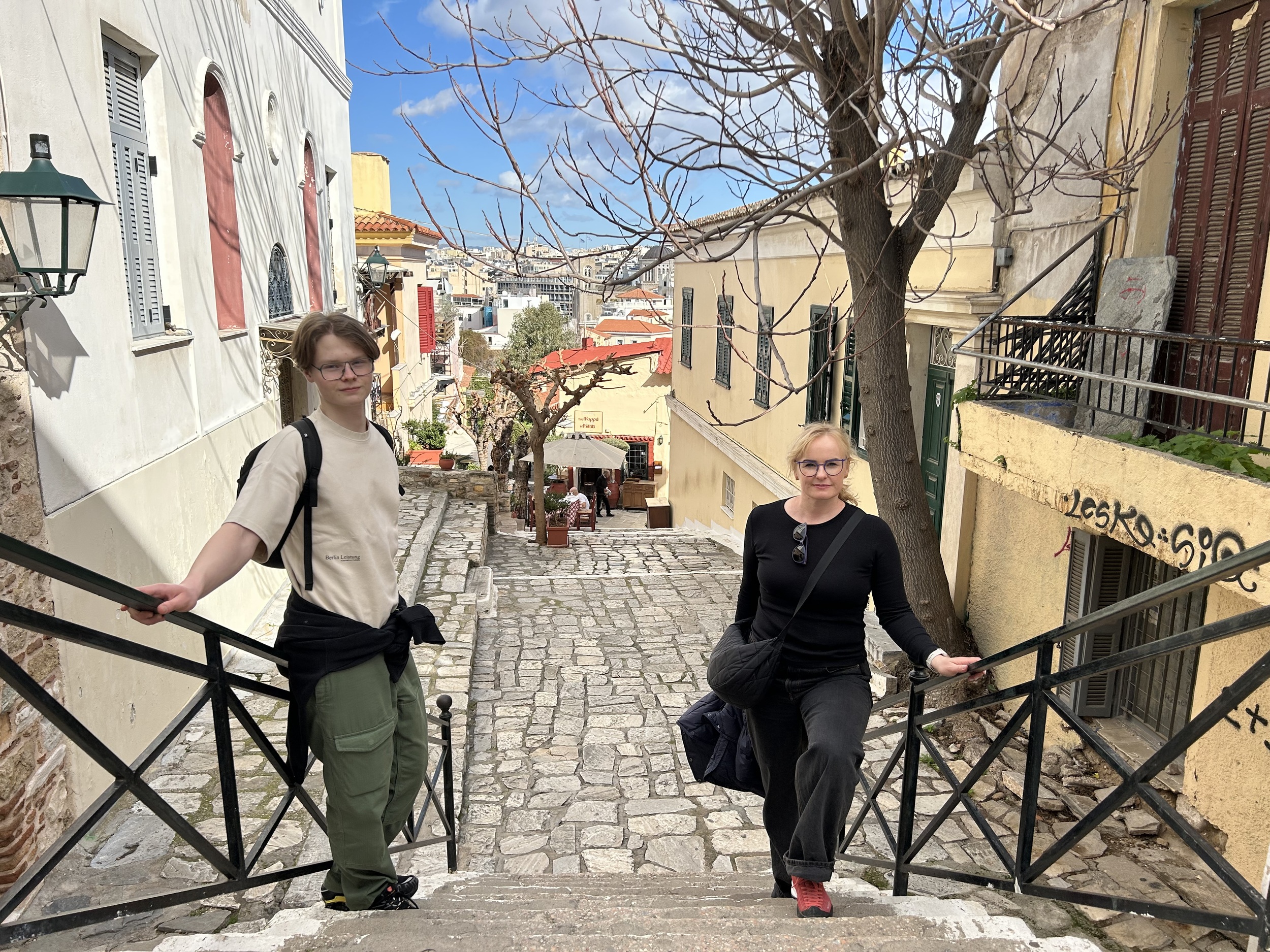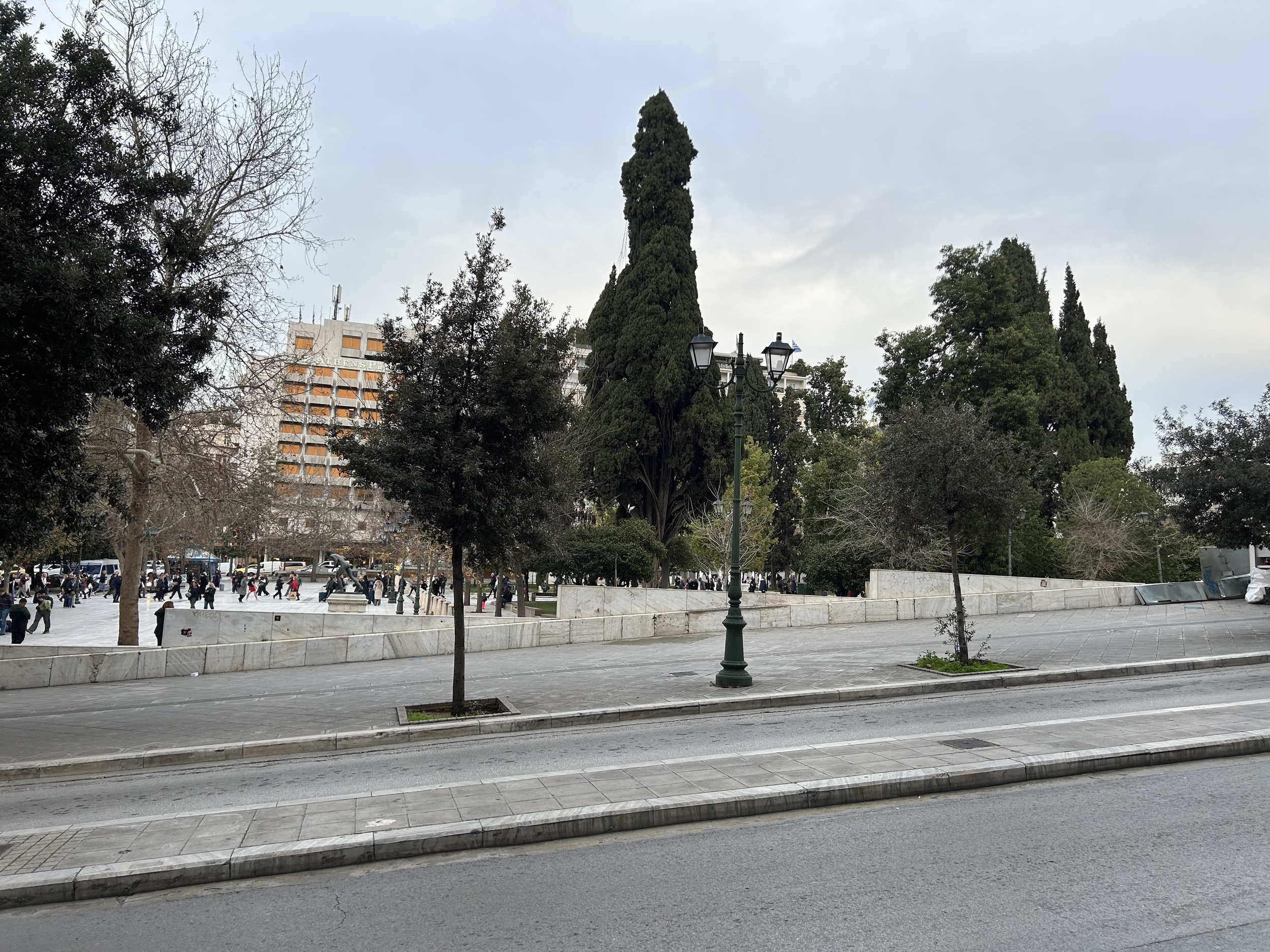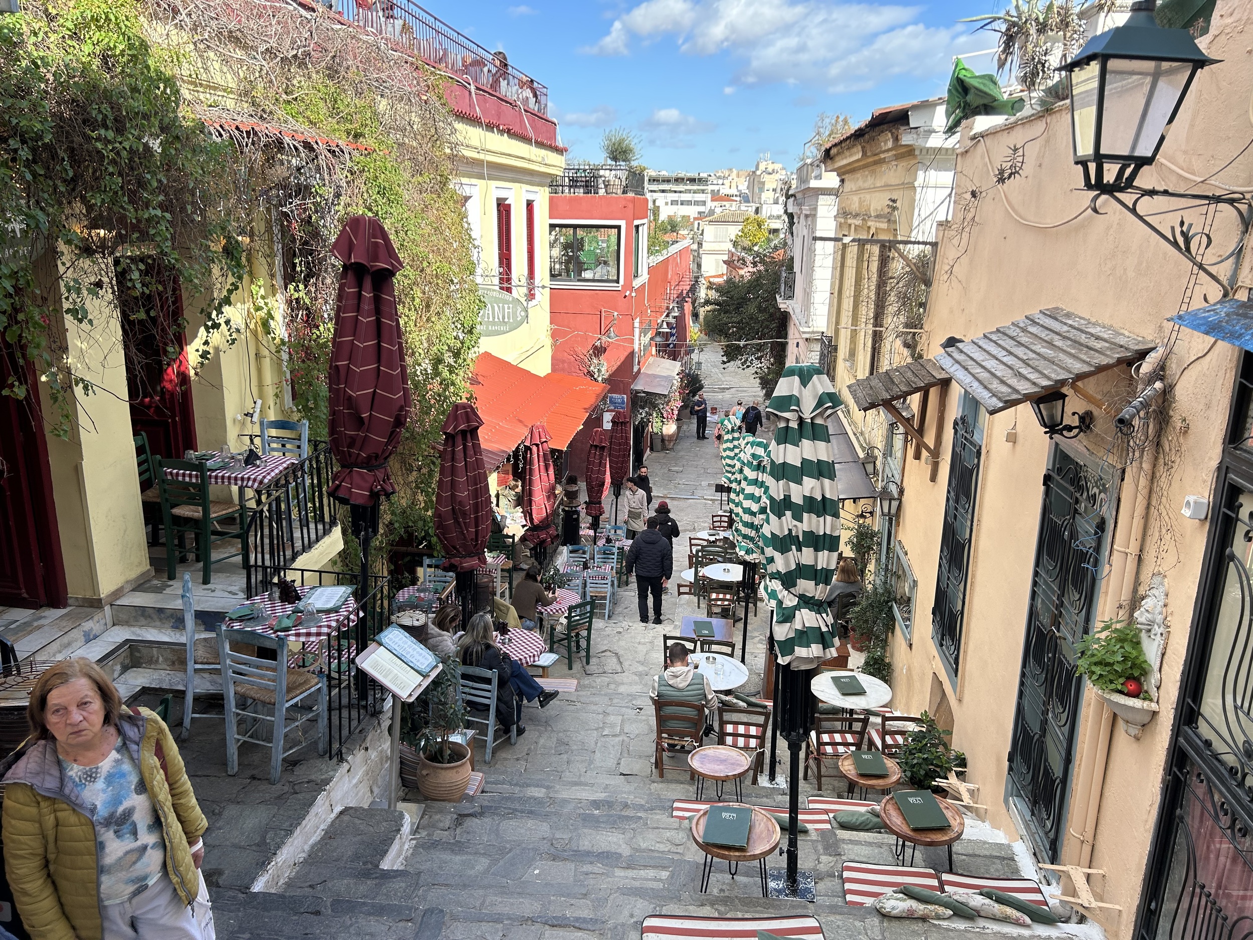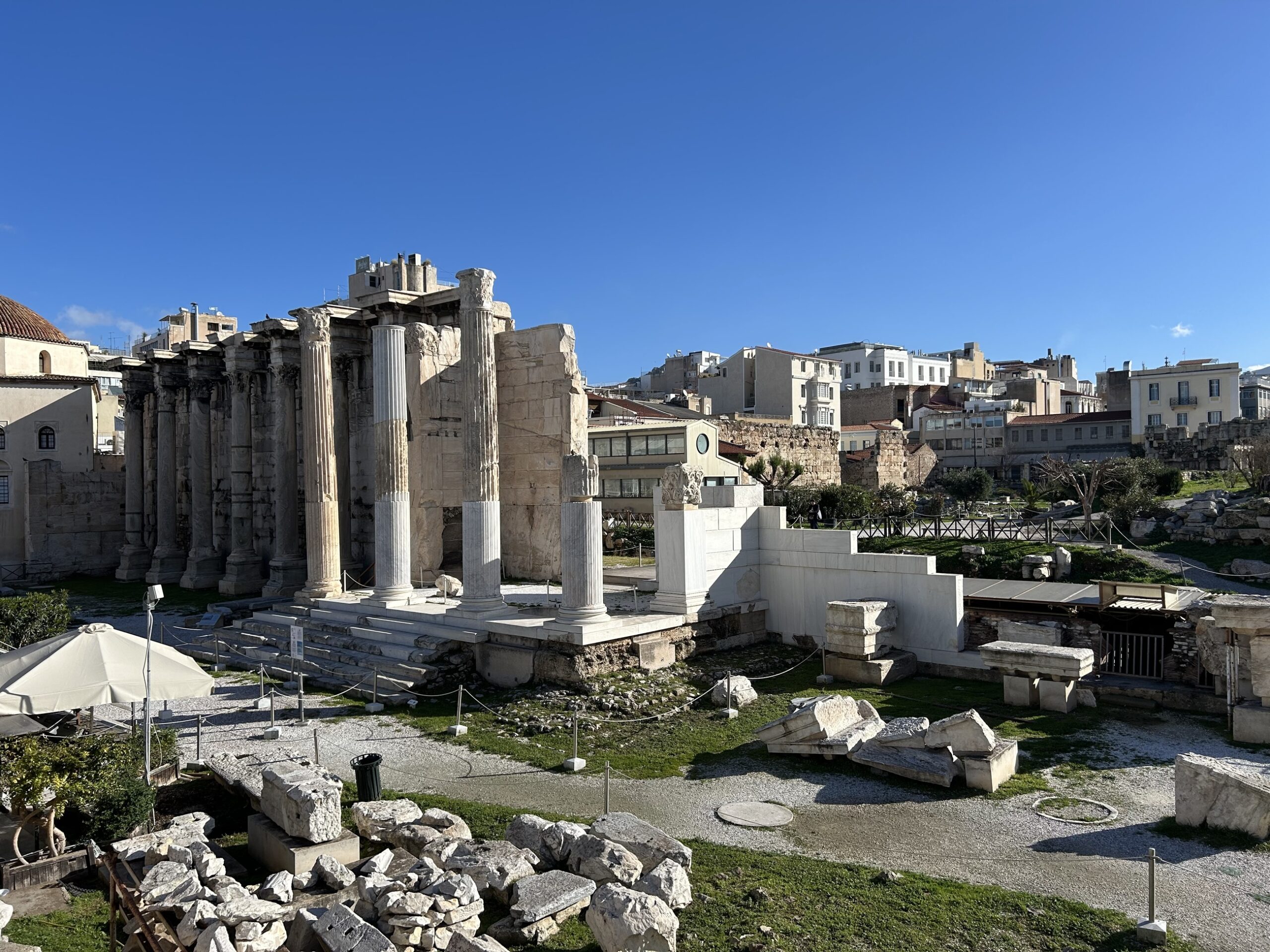 Ruch pieszy dominuje nad kołowym, a kluczowe osie — Ermou, Mitropoleos, Adrianou — funkcjonują jak miejskie korytarze tranzytowe, łączące strefy historyczne z obszarami handlowymi i komunikacyjnymi. To przestrzeń, w której obok antycznych ruin występują XIX-wieczne gmachy państwowe, powojenna zabudowa mieszkaniowa oraz nowoczesna infrastruktura XXI w., tworząc gęstą, wielowarstwową tkankę miasta.