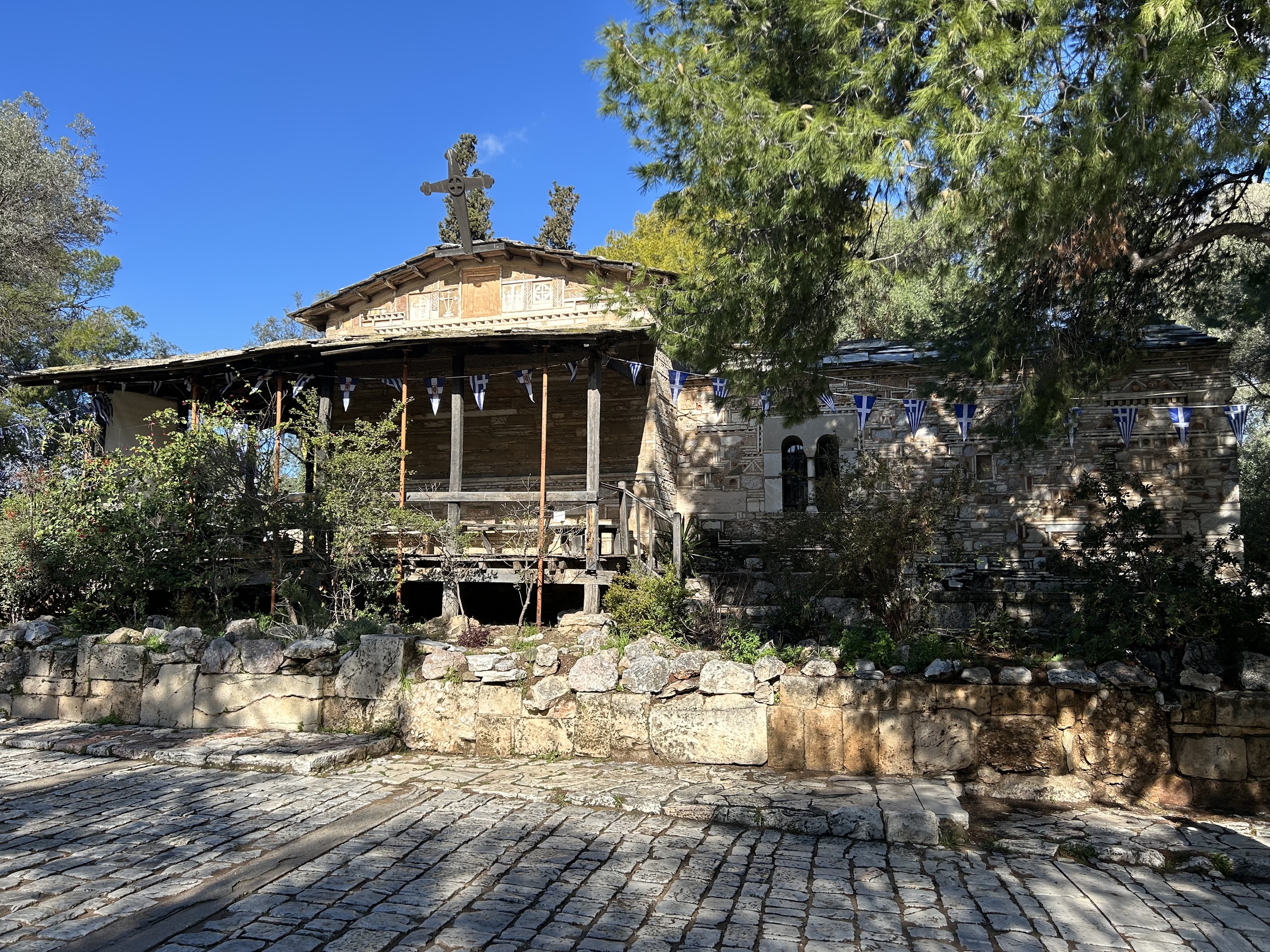 Panagia Pantanassa to średniobizantyjski kościół z X–XI w., jedyny zachowany element dawnego klasztoru. Świątynia funkcjonowała pierwotnie jako katholikon zespołu monastycznego, zlikwidowanego w okresie osmańskim. Mury wzniesiono w technice cloisonné, z regularnym układem kamienia i cegły, a elewacje pozbawiono rozbudowanej dekoracji rzeźbiarskiej. Wnętrze było wielokrotnie przekształcane; zachowane malowidła mają charakter późnobizantyński i nowożytny oraz są fragmentaryczne.