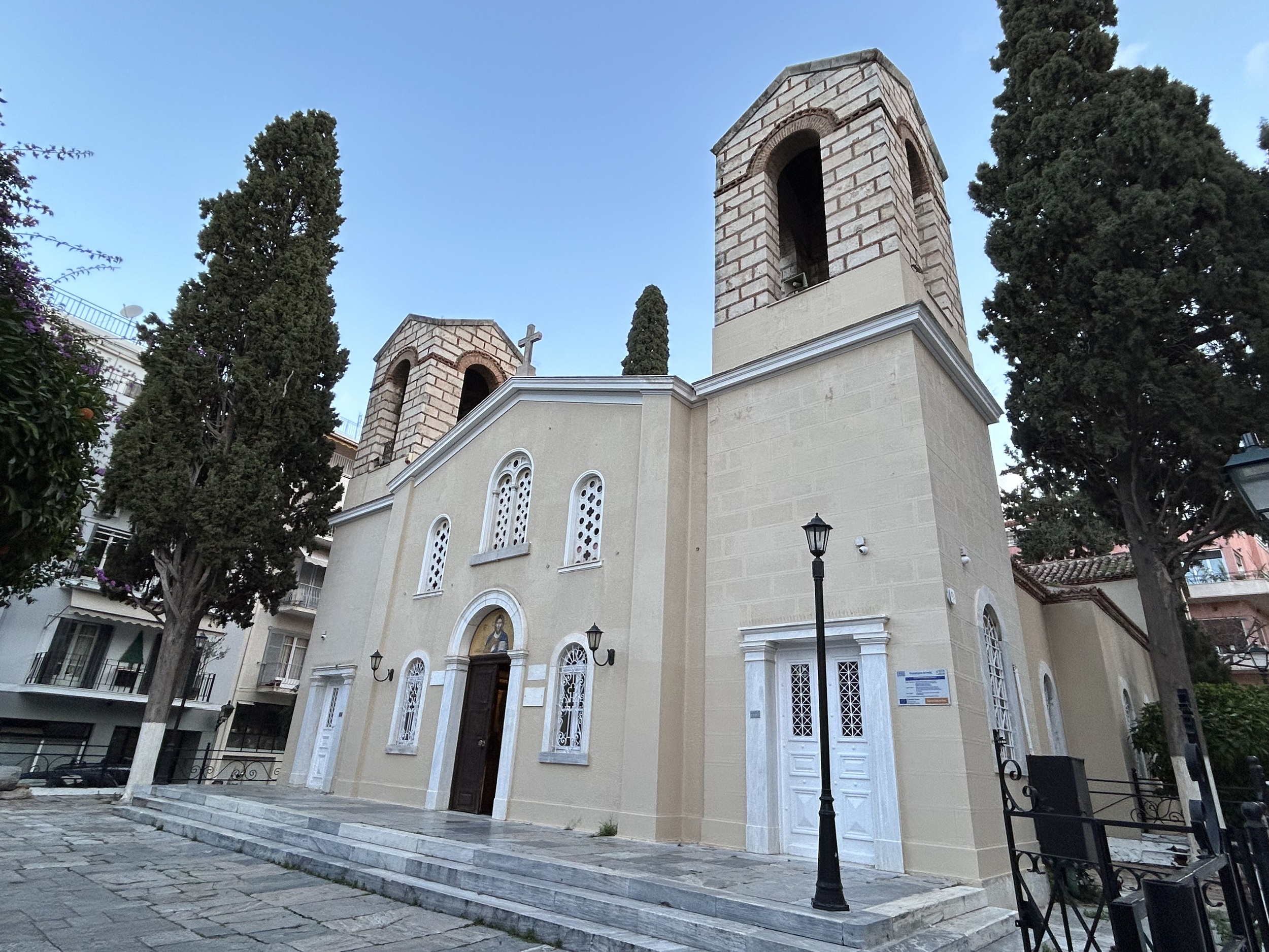 Kościół Świętej Trójcy (Agia Triada) był największym średniowiecznym budynkiem w Atenach. Został wzniesiony w XI w. jako część klasztoru benedyktyńskiego, na ruinach wcześniejszej świątyni i rzymskiej łaźni. W 1701 r. trzęsienie ziemi zniszczyło klasztor, który został rozebrany. Ruiny świątyni w połowie XIX w. kupił car Mikołaj I i kazał przebudować na potrzeby rosyjskiej diaspory. Przechowywane wewnątrz ikony zostały przywiezione z Rosji przez osoby uciekające przed rewolucją w 1917 r.