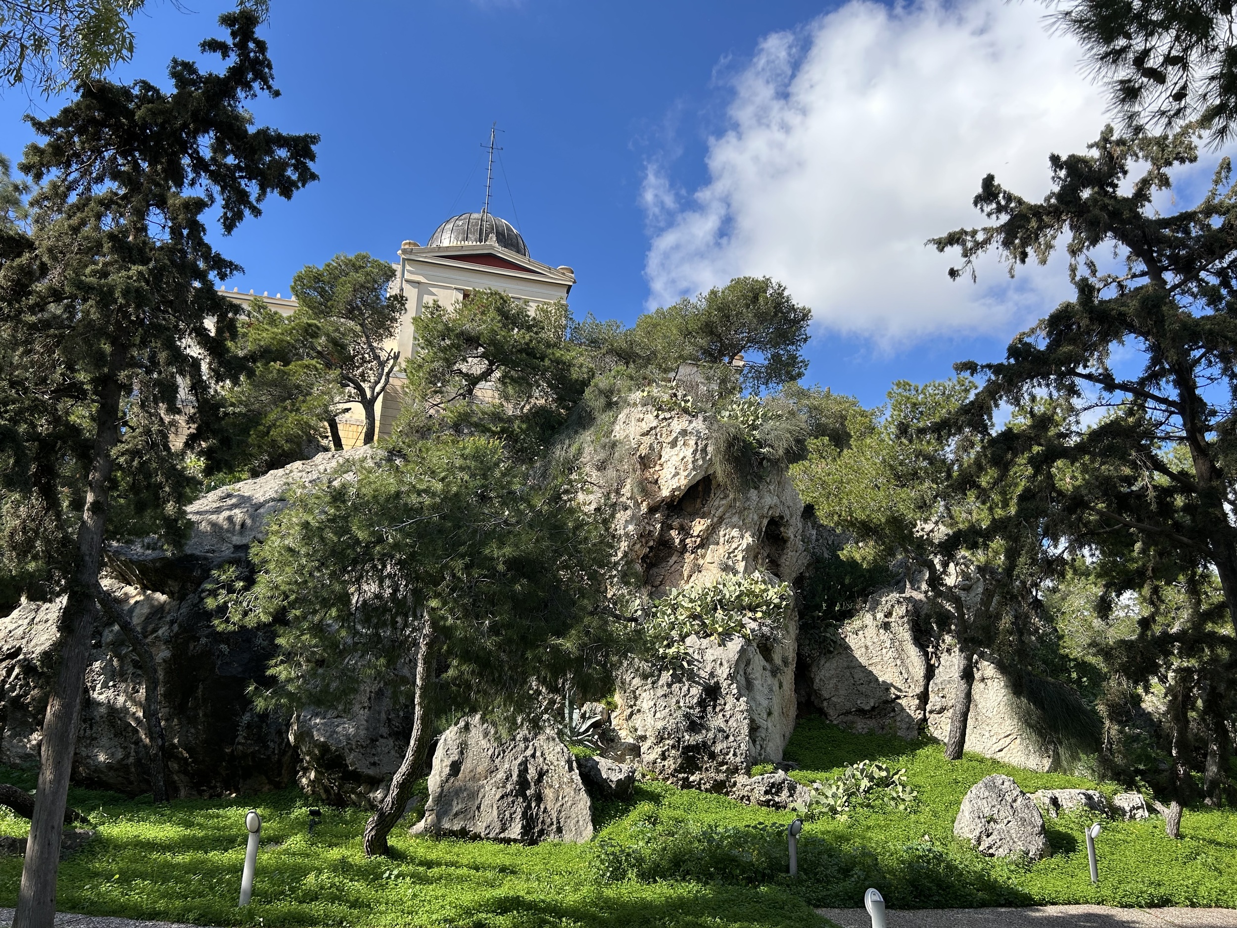 Sąsiednie Wzgórze Nimf ma wyraźniej zaznaczony profil naukowy i historyczny. W starożytności łączone z kultem nimf, w XIX w. zostało wybrane na lokalizację Narodowego Obserwatorium Ateńskiego, pierwszej nowoczesnej instytucji naukowej niepodległej Grecji (1842 r.). Miejsce to łączy funkcję zielonego zaplecza miasta z tradycją badań astronomicznych i kartograficznych, ważnych dla formowania nowoczesnych Aten.