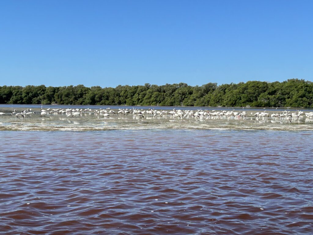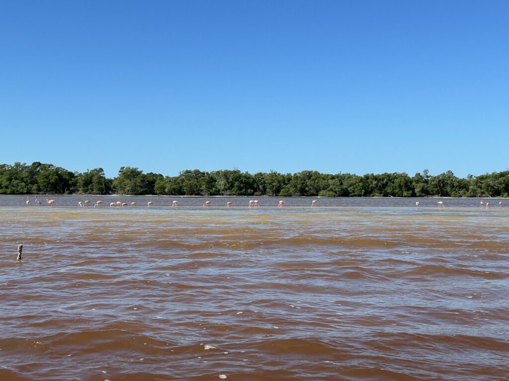 W okolicach Celestún różowe i czerwone odcienie wody pojawiają się w płytkich, silnie parujących partiach laguny oraz na solniskach, gdzie zasolenie znacznie przekracza wartości typowe dla wód morskich. W takich warunkach rozwijają się organizmy halofilne – przede wszystkim mikroalgi oraz archeony – zdolne do życia w środowisku ekstremalnie słonym.