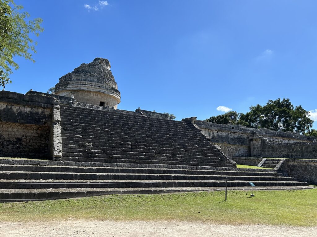 El Caracol — majańskie obserwatorium astronomiczne, jedna z najbardziej niezwykłych budowli w całym kompleksie Chichén Itzá. Jego okrągła, cylindryczna forma, wzniesiona na masywnej platformie, nie ma analogii w klasycznej architekturze Majów i wyraźnie odróżnia się od dominujących piramid i świątyń o planie prostokątnym. El Caracol pełnił funkcję ośrodka obserwacji nieba, przede wszystkim ruchów Wenus, która w kosmologii Majów miała kluczowe znaczenie religijne, polityczne i militarne. Cykl Wenus wykorzystywano m.in. do wyznaczania terminów wojen, rytuałów oraz decyzji o charakterze państwowym. Otwory w murach są precyzyjnie zorientowane względem przesileń, równonocy oraz ekstremów orbitalnych Wenus, co potwierdza zaawansowaną wiedzę astronomiczną mieszkańców Chichén Itzá. Budowla ta stanowi jedno z najlepszych świadectw, że władza Majów była ściśle powiązana z kontrolą czasu, kalendarza i cykli kosmicznych, a astronomia była narzędziem legitymizacji porządku społecznego.