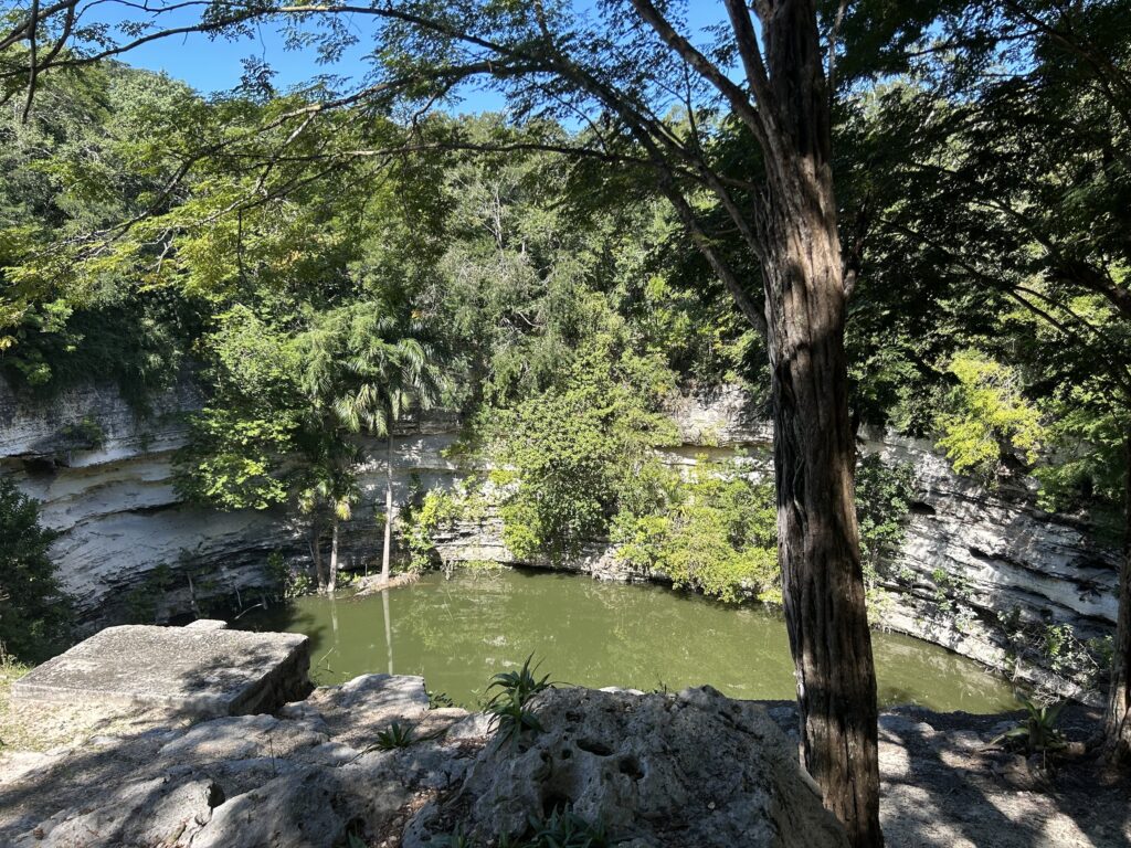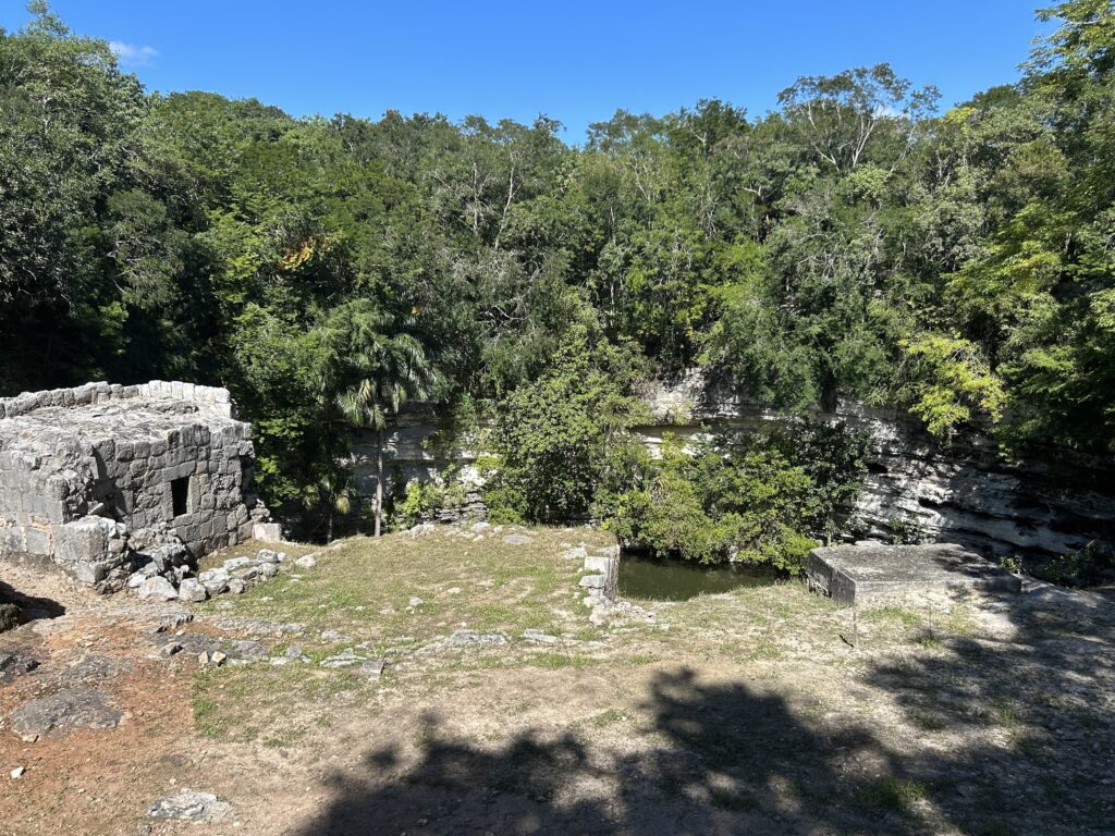 Święta Studnia (Cenote Sagrado) – naturalny lej krasowy o średnicy ok. 60 m i stromych, wapiennych ścianach sięgających 20–25 m wysokości był dla Majów bezpośrednim „wejściem” do świata podziemnego – Xibalby. Jej położenie na północ od głównego zespołu ceremonialnego nie było przypadkowe i korespondowało z kosmologicznym podziałem przestrzeni, w którym północ wiązano ze sferą śmierci i podziemia.
