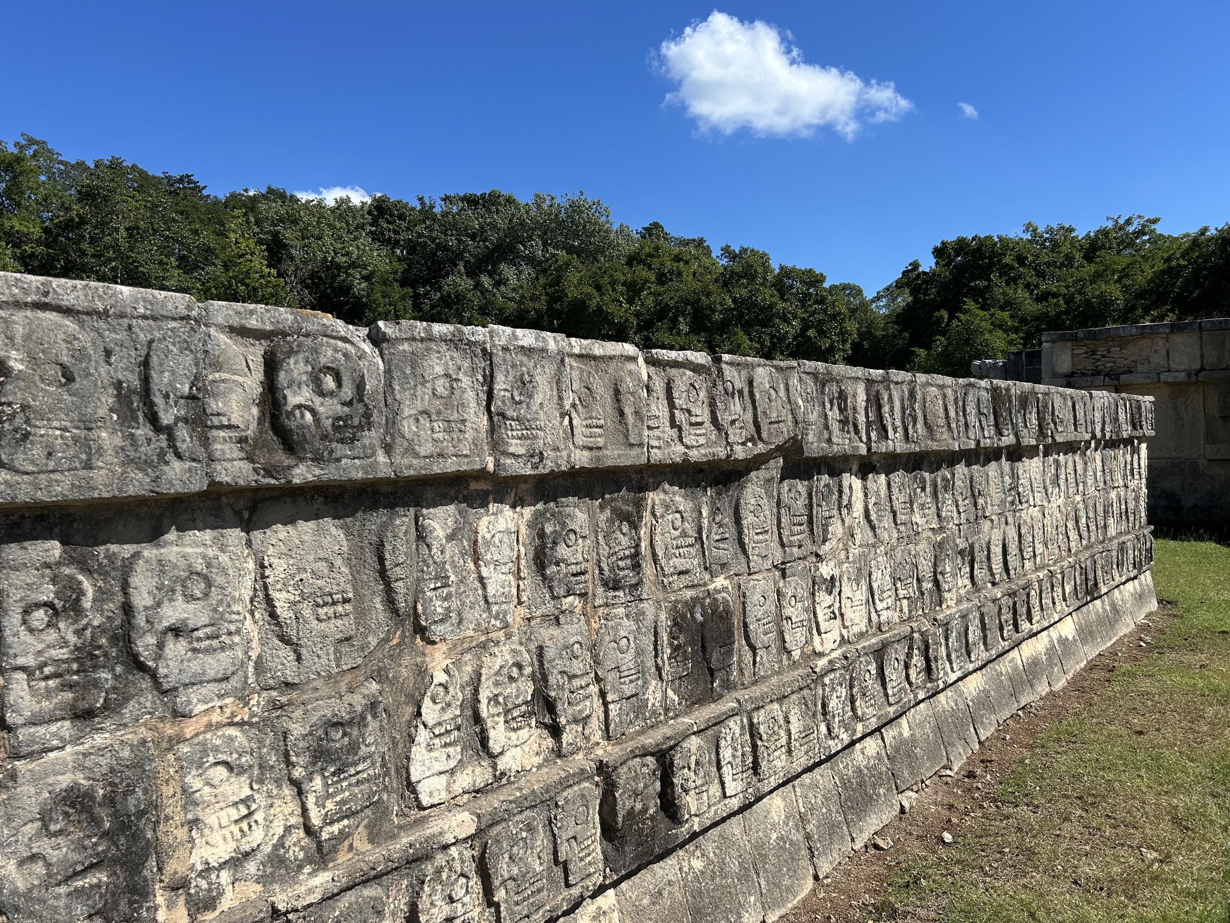 Tzompantli w Chichén Itzá było kamienną platformą służącą do publicznej ekspozycji czaszek ofiar złożonych bogom, przede wszystkim po rytualnych grach w piłkę oraz ceremoniach religijnych związanych z kosmologią Majów i wpływami tolteckimi. Sama nazwa pochodzi z nahuatl (tzontli – czaszka, pantli – rząd), co dobrze oddaje synkretyczny charakter Chichén Itzá, łączącego tradycje majańskie z elementami centralnomeksykańskimi. Reliefy pokrywające platformę przedstawiają szeregi czaszek, często w realistyczny i powtarzalny sposób, pozbawiony indywidualizacji. Ich funkcją nie była dekoracja, lecz manifestacja porządku kosmicznego i politycznego: ofiara stanowiła akt podtrzymania równowagi świata, a zarazem publiczne przypomnienie o sile elit religijnych i militarnych kontrolujących miasto. Tzompantli działało więc jednocześnie jako przestrzeń rytualna, narzędzie propagandy i trwały element „pedagogiki strachu”, wpisanej w krajobraz ceremonialny miasta.