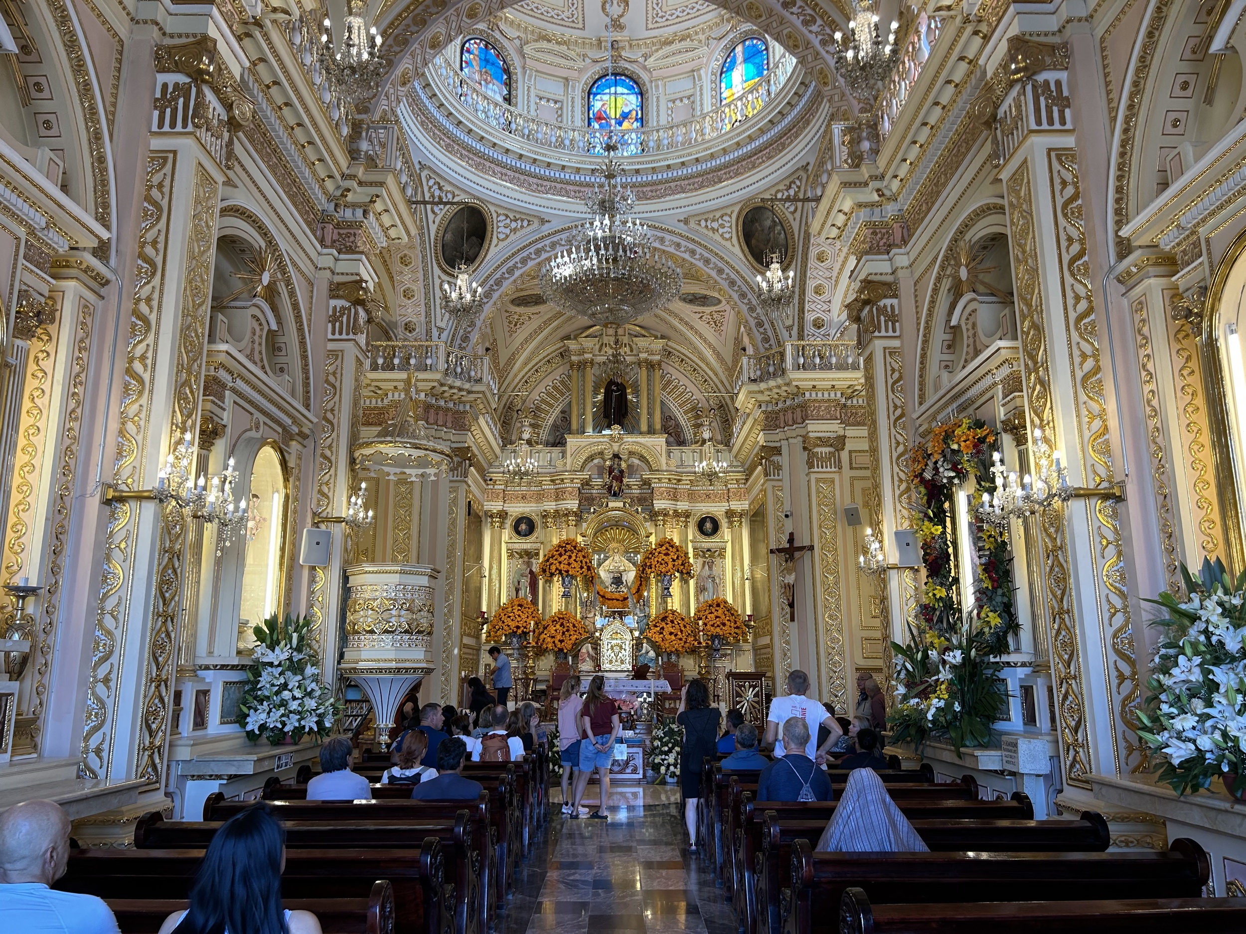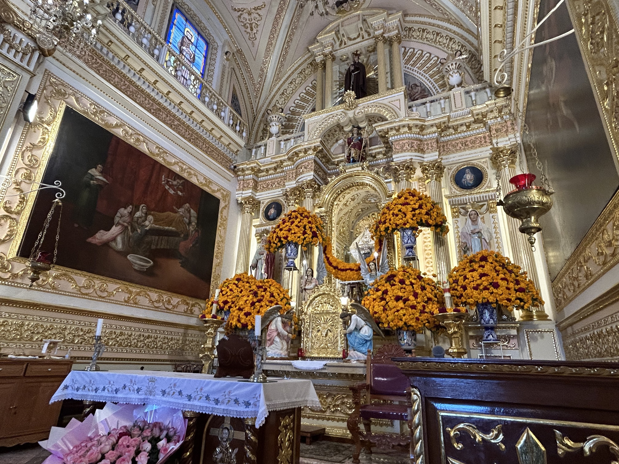 Cała przestrzeń świątyni jest nośnikiem treści. Setki postaci aniołów, cherubinów, rozet i girland tworzą wizualny katechizm, w którym chrześcijańskie motywy zostały przefiltrowane przez lokalną wrażliwość. Charakterystyczne są twarze aniołów o rysach indiańskich, motywy owoców, kwiatów i elementów natury znanych z Mezoameryki. Swoista inkulturacja chrześcijaństwa – próba opisania prawd wiary językiem, który był dla miejscowej społeczności naturalny i zrozumiały.