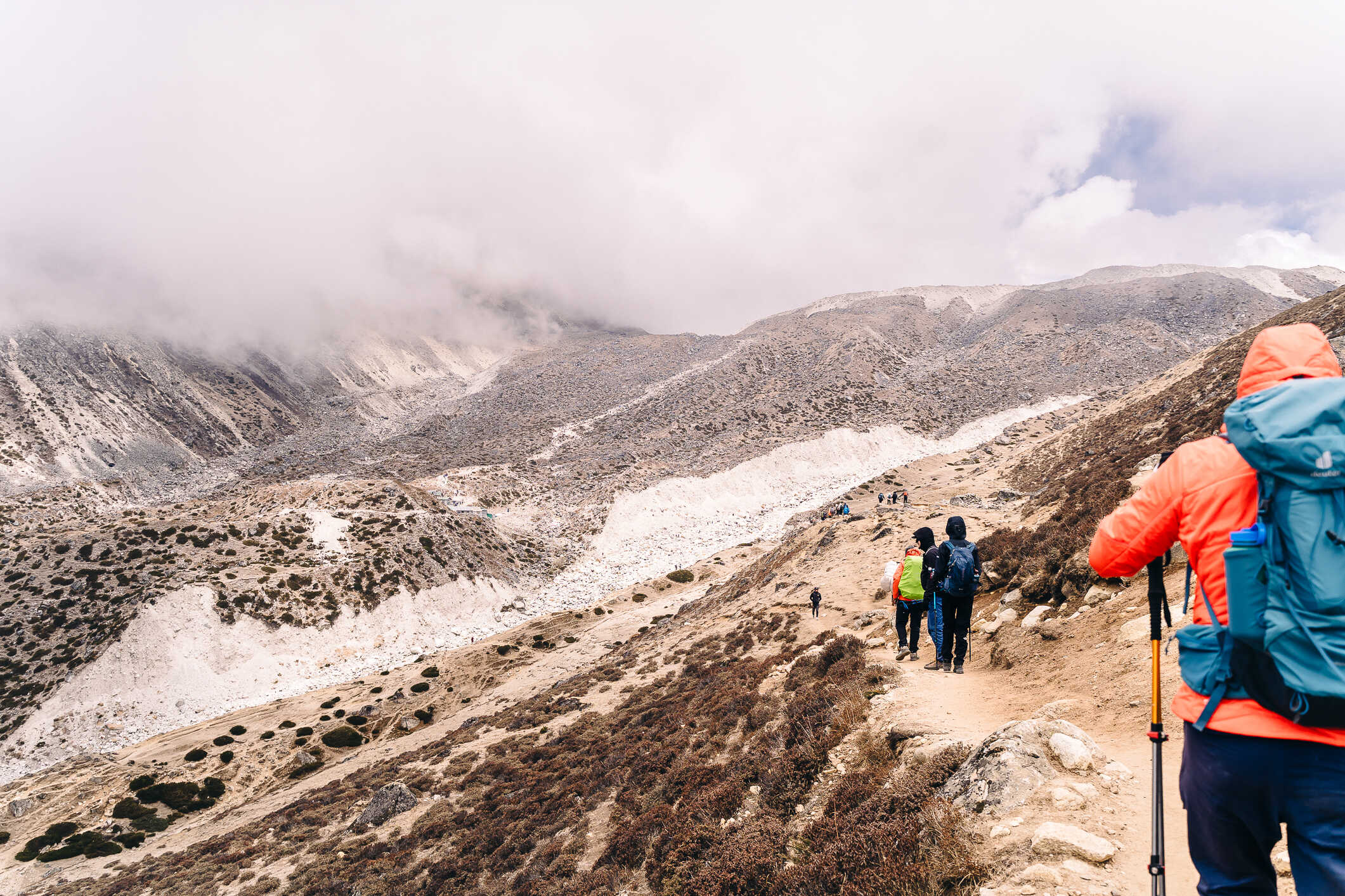 Po minięciu przełęczy Dughla/Thukla Pass (ok. 4800 m) szlak wypłaszcza się i zaczyna biec moreną lodowca Khumbu, jednego z największych i najbardziej znanych lodowców Himalajów (ok. 17 km długości, spływa spod Everestu oraz Lhotse, kończąc się poniżej wioski Dingboche). To krajobraz surowy – kamienie, piargi, jęzory lodowe i niewielkie stawy.