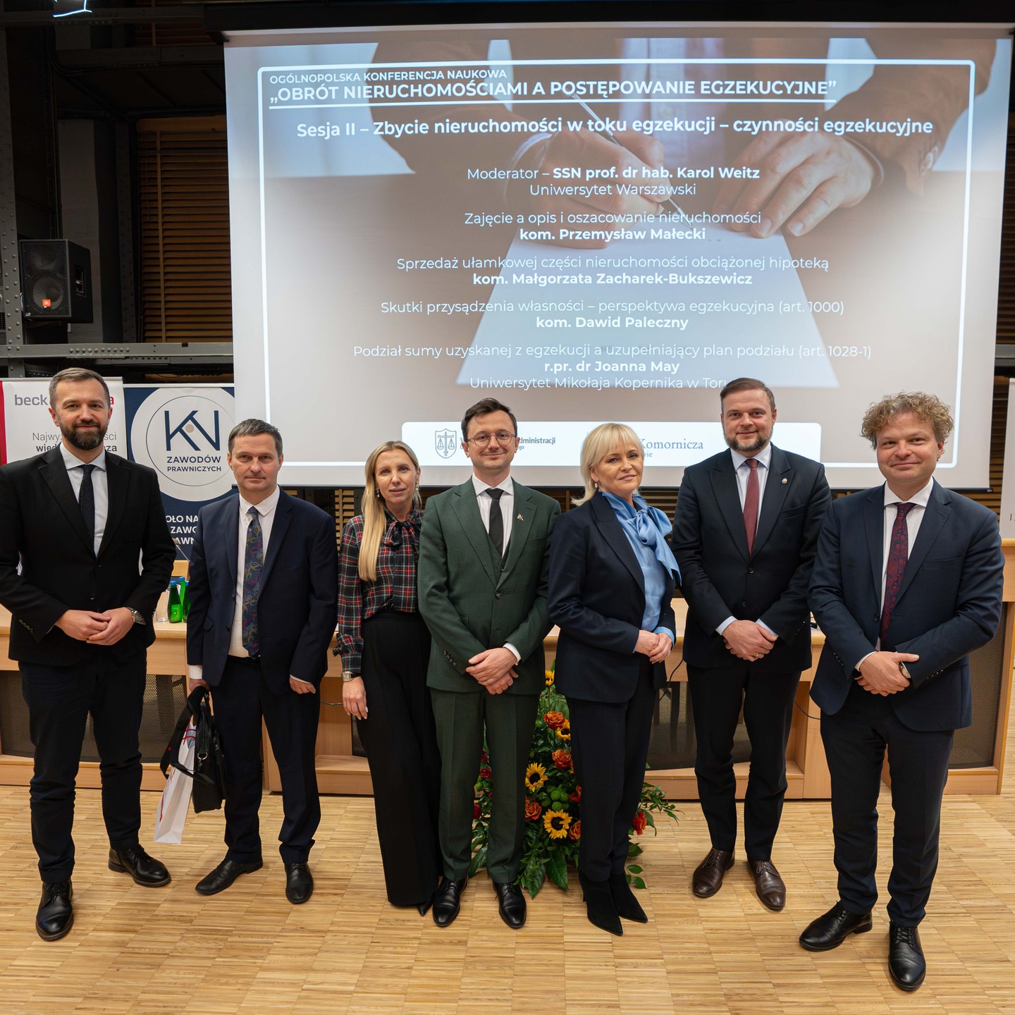 Ogólnopolska konferencja naukowa pt. „Obrót nieruchomościami a postępowanie egzekucyjne” organizowana przez Wydział Prawa i Administracji Uniwersytetu Warszawskiego, Izbę Komorniczą w Warszawie oraz Izbę Notarialną w Warszawie odbędzie się 28 listopada 2025 r. (piątek) w godz. 9:30 – 16:00, aula Starej Biblioteki Uniwersytetu Warszawskiego, Kampus Główny UW przy ul. Krakowskie Przedmieście 26/28 w Warszawie. W programie uwzględniono trzy bloki tematyczne, obejmujące notarialne zbycie nieruchomości w toku egzekucji, czynności egzekucyjne związane ze sprzedażą nieruchomości, egzekucję w kontekście postępowania wieczystoksięgowego