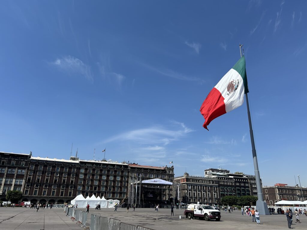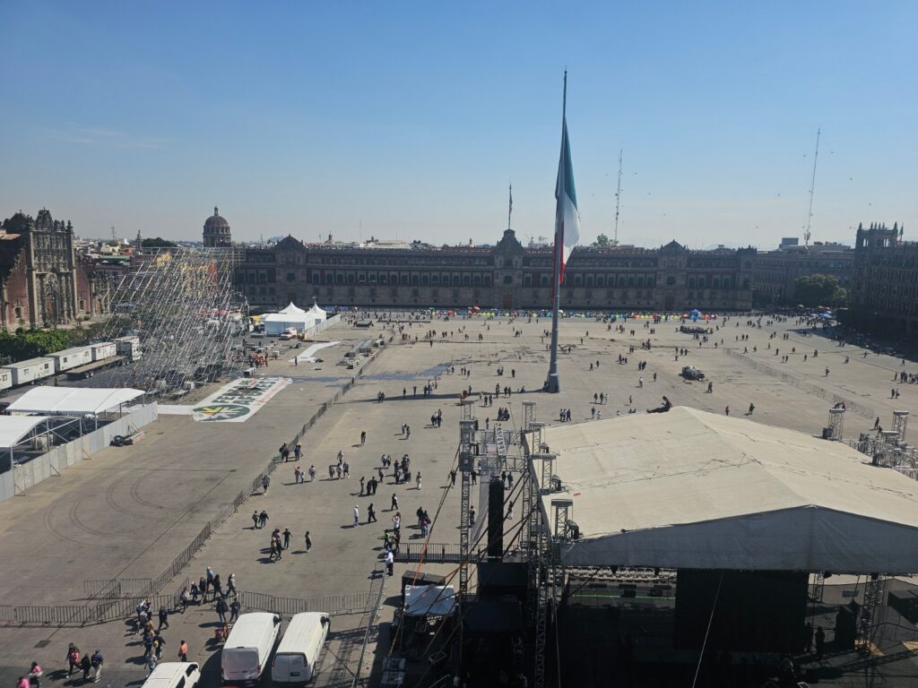 Tu odbywają się także masowe demonstracje polityczne, obchody państwowe, koncerty i rytuały obywatelskie, z dorocznym Grito de Independencia („Okrzyk Niepodległości”) upamiętnia początek meksykańskiej wojny o niepodległość 15/16 września 1810 r., gdy ksiądz Miguel Hidalgo y Costilla wezwał ludność do buntu przeciw władzy kolonialnej Hiszpanii. Monumentalna flaga Meksyku, regularnie podnoszona i opuszczana w ceremonialnej oprawie jest elementem codziennej praktyki symbolicznej państwa.