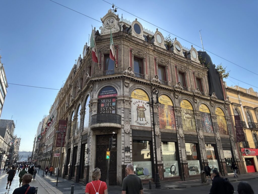 Muzeum Estanquillo – „La Ciudad de México” mieści się w reprezentacyjnym, eklektycznym gmachu przy Calle de Madero, w samym sercu historycznego centrum. Zbiory, oparte na kolekcji Carlosa Monsiváisa, dokumentują społeczną i kulturową historię CDMX, widzianą z perspektywy ulicy, prasy i codzienności.