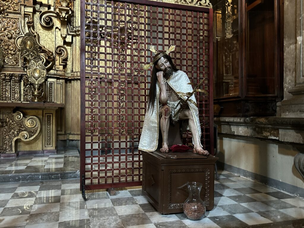 Figura Señor del Veneno zajmuje istotne miejsce w pobożności ludowej związanej z katedrą. Przedstawiono Chrystusa siedzącego, ubiczowanego i cierniem ukoronowanego. Nie jest wykonana z metalu, lecz z drewna polichromowanego z warstwami gruntu, farb i pigmentów organicznych. Według przekazu z XVII w. do katedry przyniesiono substancję toksyczną i złożono przy figurze celem sprofanowania lub zniszczenia wizerunku. Ciemny kolor ciała ma być skutkiem wchłonięcia trucizny, która – zgodnie z legendą – nie zaszkodziła wizerunkowi.