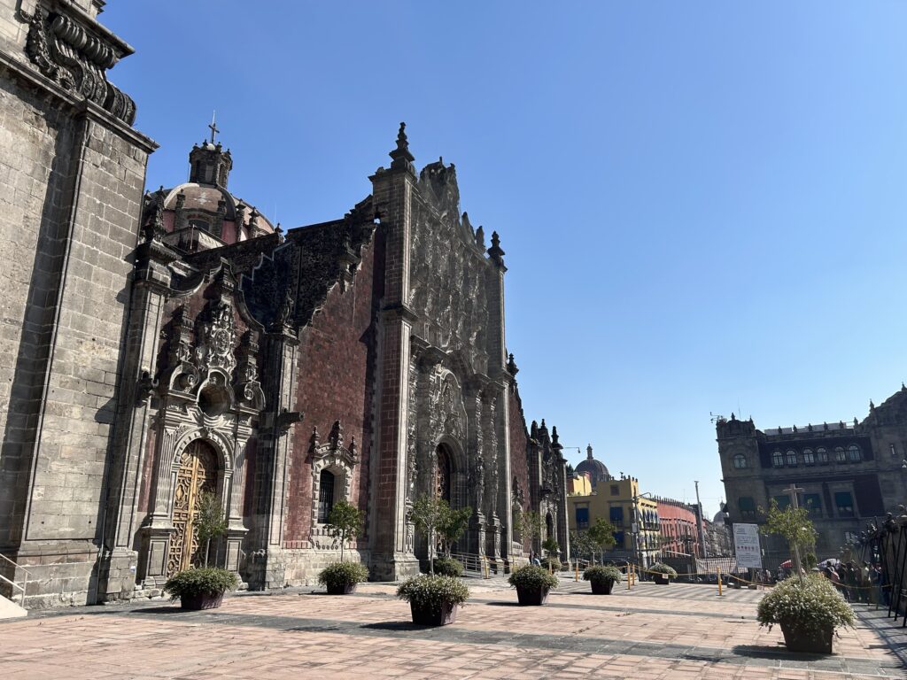 Dzisiejsze centrum Mexico City zostało wzniesione bezpośrednio na ruinach jednego z największych miast świata przedhiszpańskiego, azteckiego Tenochtitlánu. Po jego zdobyciu miasta w 1521 r. Hiszpanie nie przenieśli stolicy, lecz nadpisali ją nową zabudową: kolonialne centrum, w tym katedra, zostało osadzone dokładnie na dawnym rdzeniu azteckiego miasta. Tenochtitlán jako „miasto pod miastem”, zasługuje na osobną refleksję.