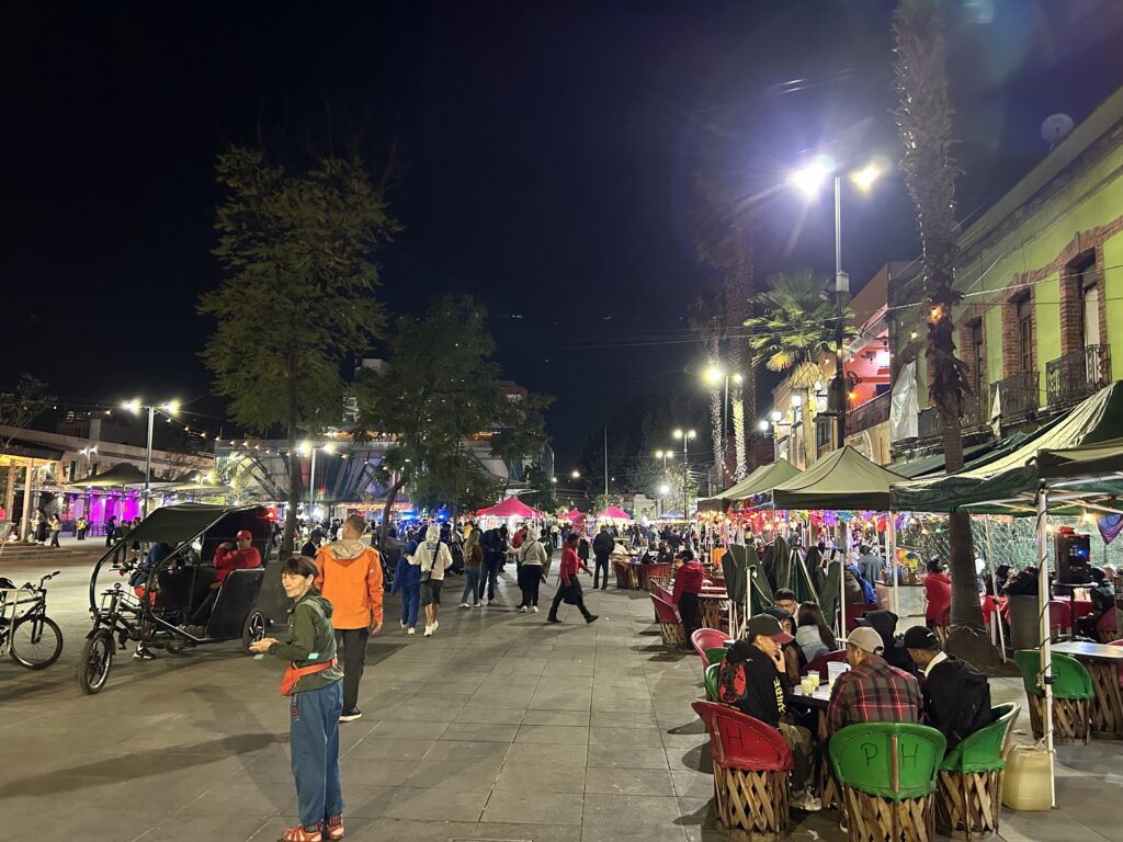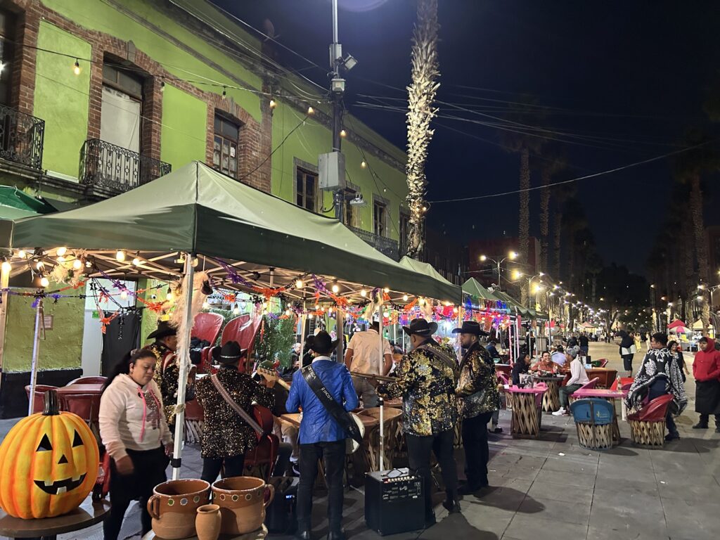 Mariachi w tradycyjnych strojach, zespoły norteño, trębacze i skrzypkowie czekający na zlecenie. Muzyka nie płynie tu z jednego źródła – nakłada się, konkuruje, miesza z rozmowami, śmiechem i zapachem ulicznego jedzenia.