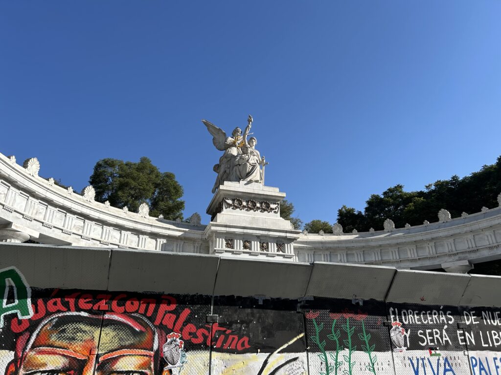 Wzniesiony w 1910 r. Hemiciclo a Juárez – półkolista kolumnada z białego marmuru – odwołuje się do neoklasycznych form republikańskich, świadomie czerpiących z estetyki antycznego Rzymu i Grecji.
