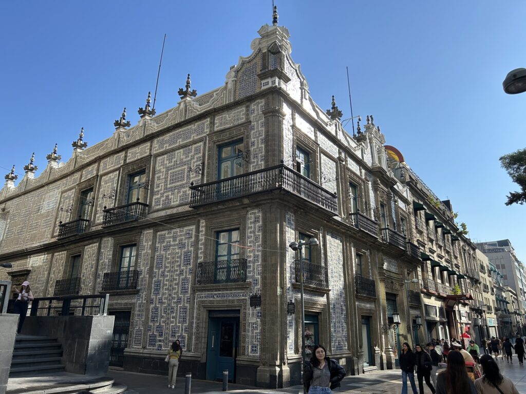 Casa de los Azulejos (Dom Płytek) powstał w XVIII w. jako rezydencja arystokratycznej rodziny hrabiów Valle de Orizaba i stanowi wyjątkowy przykład baroku nowohiszpańskiego, wzbogaconego o dekorację ceramiczną. Znakiem rozpoznawczym jest elewacja niemal w całości pokryta azulejos z Talavery (majolika sprowadzana z Puebli), zestawiona z szarym kamieniem wulkanicznym tezontle.