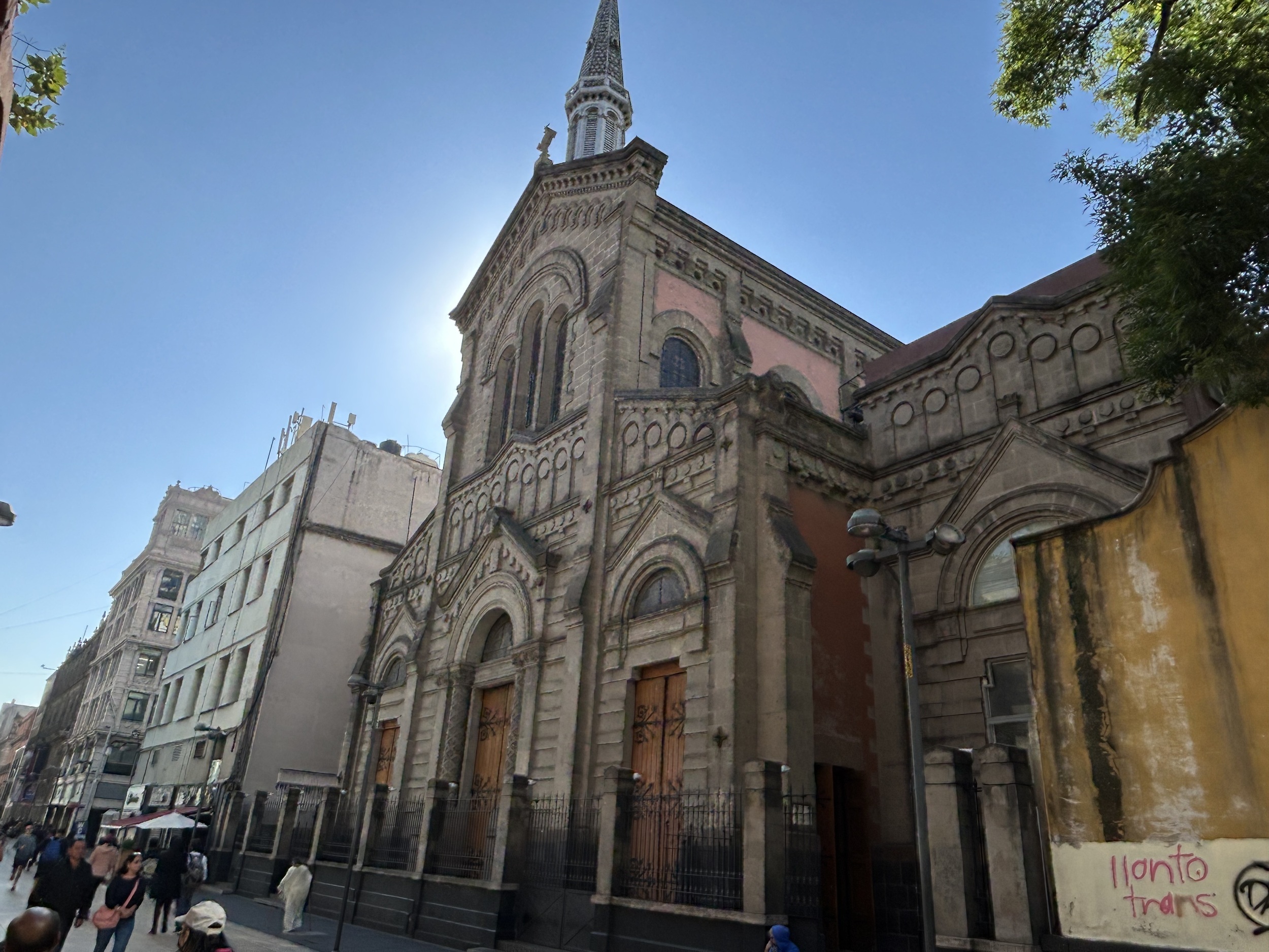 Templo Expiatorio Nacional de San Felipe de Jesús poświęcony jest Filipowi z Jezusa – pierwszemu świętemu urodzonemu w Meksyku, franciszkańskiemu męczennikowi straconemu w Japonii w 1597 r., który stał się symbolem narodowej tożsamości katolickiej kraju. Neoromańsko-neogotycka forma odcina się od kolonialnego baroku pobliskich kościołów.
