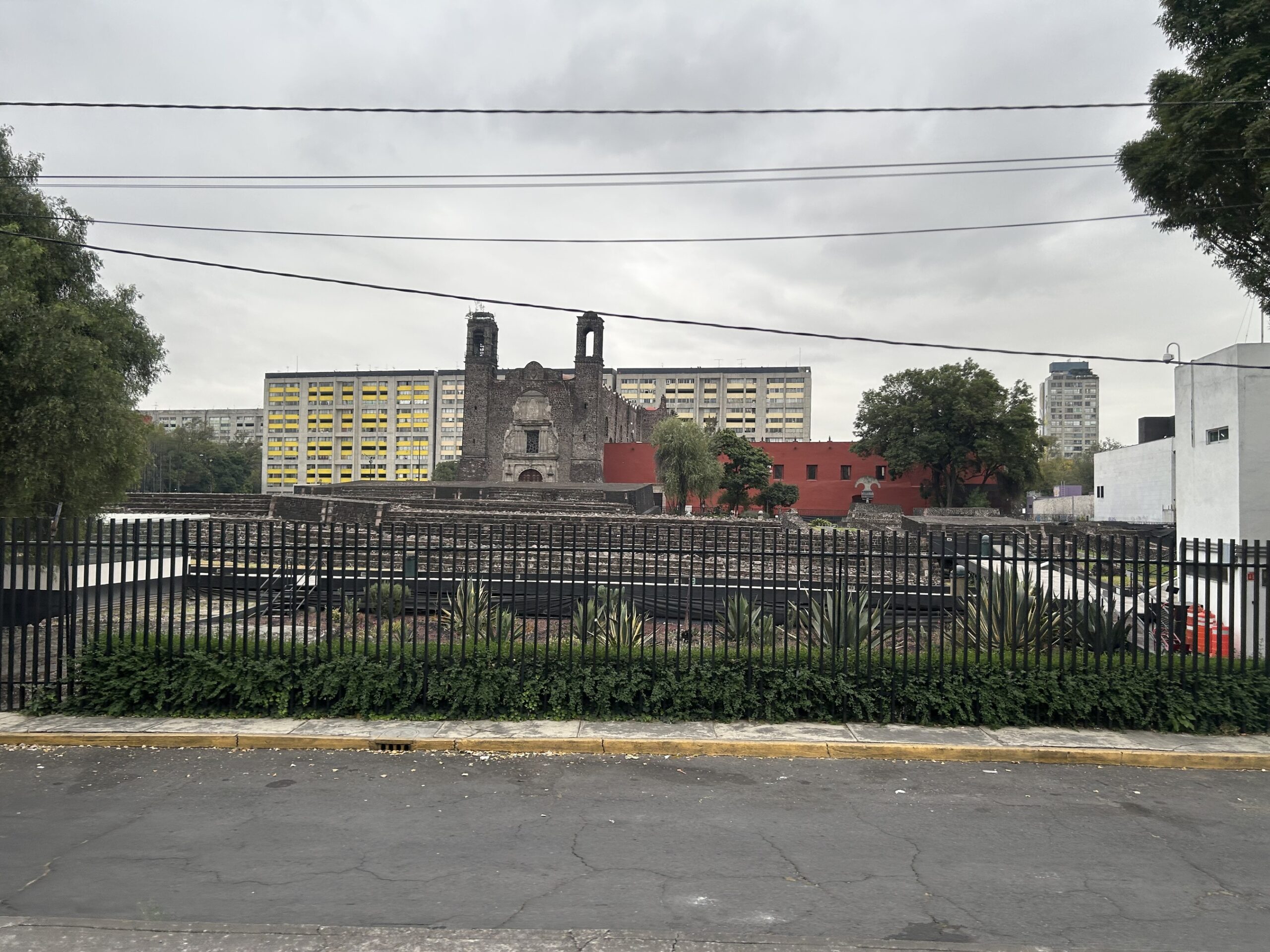 Kościół św. Jakuba Apostoła w Tlatelolco (Templo de Santiago Tlatelolco), wzniesiony w XVI w. przez Hiszpanów, dominuje nad otaczającą przestrzenią jako wyraźny znak kolonialnej władzy religijnej. Jego surowa, kamienna bryła została celowo posadowiona na terenie dawnego centrum miasta Tlatelolco, jednego z najważniejszych ośrodków azteckich i miejsca ostatnich walk w 1521 r. Bezpośrednio przed kościołem rozciągają się ruiny prekolumbijskiej zabudowy, pozostałości miasta, które po upadku imperium Azteków zostało fizycznie zniszczone i podporządkowane nowemu porządkowi.