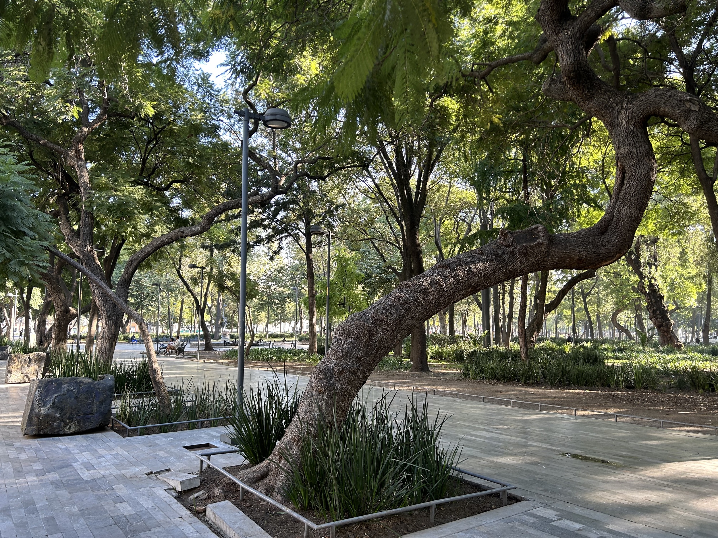 Alameda Central jest najstarszym parkiem miejskim w obu Amerykach, założony w 1592 r. Regularny układ alei i placów był świadomym nawiązaniem do europejskich ogrodów miejskich, przeniesionych na grunt Nowej Hiszpanii.