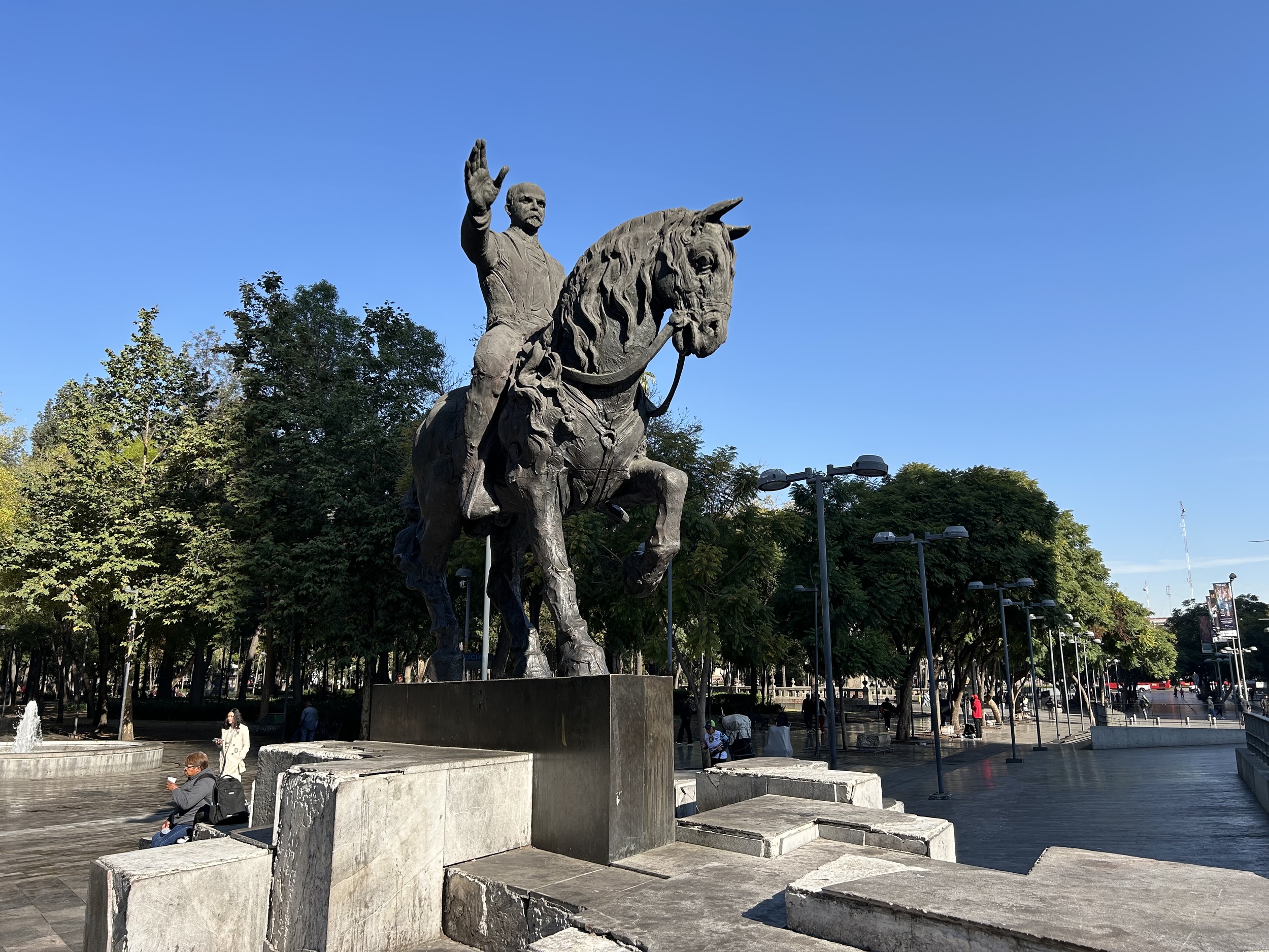 Nie zabrakło także miejsca dla Francesko I. Madero, inicjatora rewolucji meksykańskiej z 1910 r., która doprowadziła do obalenia wieloletniej dyktatury Porfiria Díaza. Jako prezydent Meksyku w latach 1911–1913 próbował przeprowadzić pokojową transformację ustrojową, został obalony i zamordowany podczas zamachu stanu, stając się symbolem niespełnionej, liberalnej wizji rewolucji. Juárez symbolizuje narodziny republiki i państwa prawa w XIX w., Madero – próbę jego demokratycznego odnowienia na początku XX w.