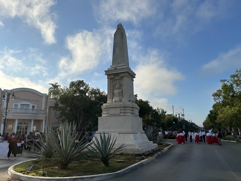 Obok pomników konkwistadorów i symboli kolonialnej dominacji umieszczono tajże postać reprezentująca rewolucję społeczną i sprzeciw wobec oligarchicznego dziedzictwa miasta. Pomnik Felipa Carrillo Puerto upamiętnia jedną z kluczowych postaci nowoczesnej historii Jukatanu. Felipe Carrillo Puerto był w latach 1922–1924 gubernatorem stanu Jukatan, radykalnym reformatorem społecznym, który otwarcie wystąpił przeciwko porządkowi ukształtowanemu w epoce henequenowego bogactwa.