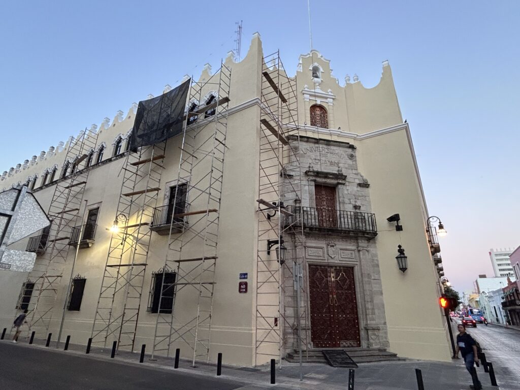 Główny kampus Universidad Autónoma de Yucatán (UADY) mieści się w dawnym kompleksie jezuickim San Javier, którego początki sięgają XVII wieku. Po wypędzeniu jezuitów z imperium hiszpańskiego w 1767 r. zabudowania pełniły funkcje świeckie i edukacyjne, a od XIX wieku stały się jednym z filarów szkolnictwa wyższego na Jukatanie. Dzisiejsza UADY – oficjalnie powołana w 1922 r. – jest najważniejszą publiczną uczelnią regionu i kluczowym ośrodkiem badań nad historią, kulturą i językiem Majów.