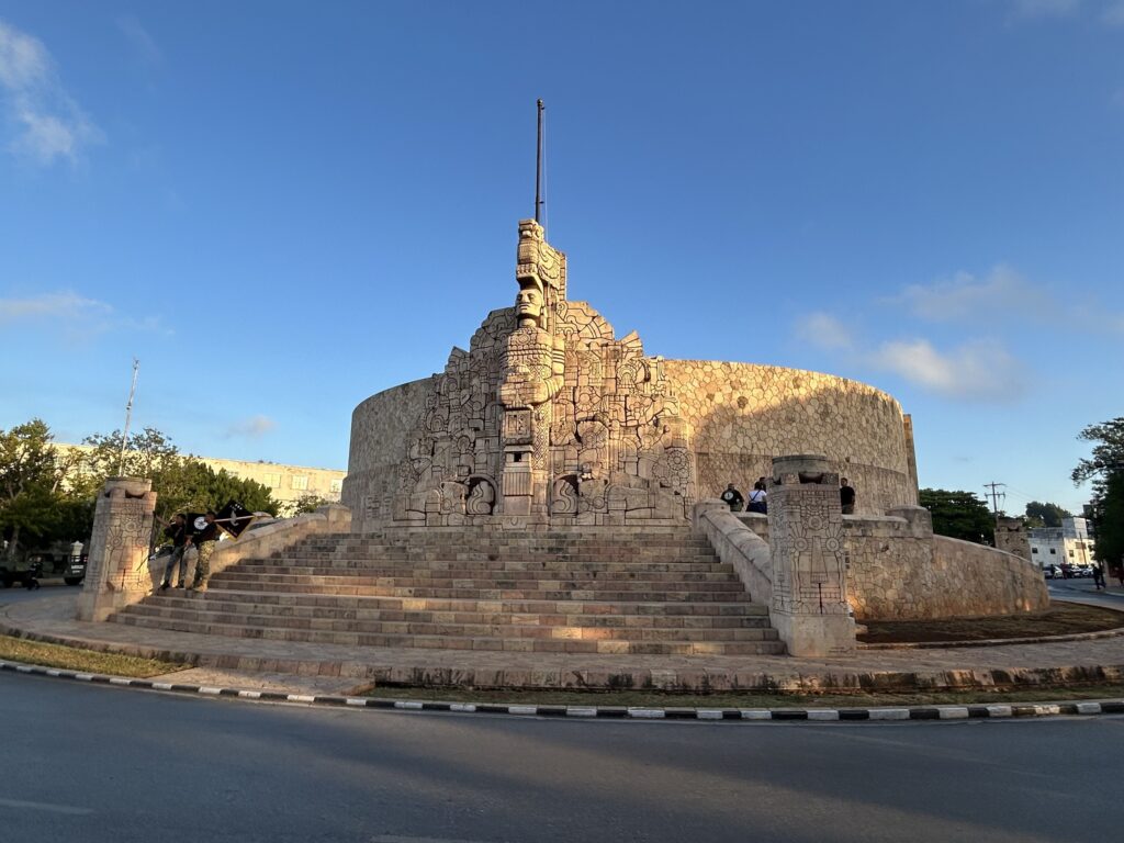 Przy reprezentacyjnej alei Paseo de Montejo wzniesiono jeden z najważniejszych i najbardziej złożonych ideowo pomników w Meksyku – Monumento a la Patria (Pomnik Ojczyzny). Monument powstał w latach 1945–1956 według projektu Rómulo Rozo, związanego z Meksykiem, i stanowi monumentalną, kamienną opowieść o historii kraju – od czasów prehiszpańskich po XX wiek. Centralnym elementem kompozycji jest masywna figura kobieca, symbolizująca Ojczyznę. Rozbudowane płaskorzeźby cywilizacje prehiszpańskie i kosmologię Majów, konkwistę i okres kolonialny, walkę o niepodległość, reformy XIX wieku, rewolucję meksykańską i narodziny państwa nowoczesnego.