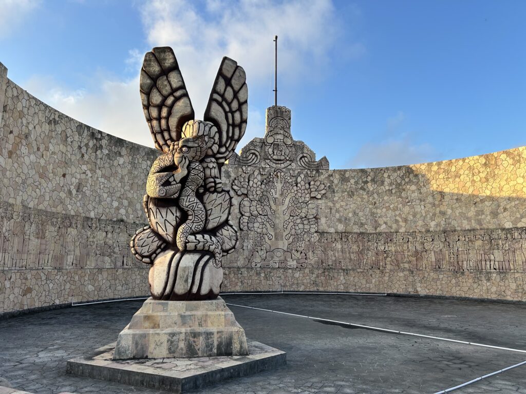 Szczególne miejsce zajmuje symbolika Jukatanu – motywy majańskie, lokalni bohaterowie i odniesienia do historii regionu. Pomnik podkreśla ciągłość cywilizacyjną Meksyku, zakorzenioną w kulturach rdzennych.