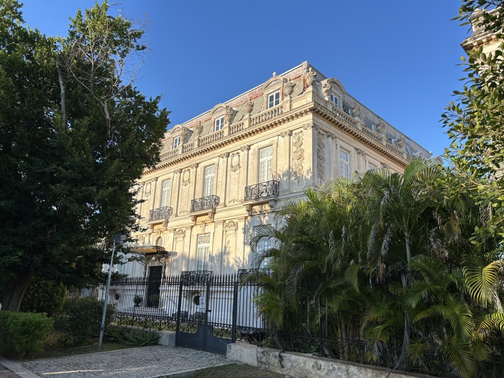 Architektura jest niejako „europejska”- neoklasycyzująca kompozycja, ciężkie gzymsy, bogata sztukateria i rytm okien mają budować wrażenie stabilności i prestiżu elit, które wzbogaciły się na eksporcie włókna henequenowego. Palacio Cantón (Pałac Cantóna) – rezydencja z czasów późnego Porfiriatu, wznoszona ok. 1904–1911 dla gubernatora Jukatanu Francisca Cantóna Rosado. Obecnie mieści się tu Regionalne Muzeum Antropologii w Jukatanie (Museo Regional de Antropología de Yucatán), prezentujące historię Majów i współczesnych ludów rdzennych Jukatanu.