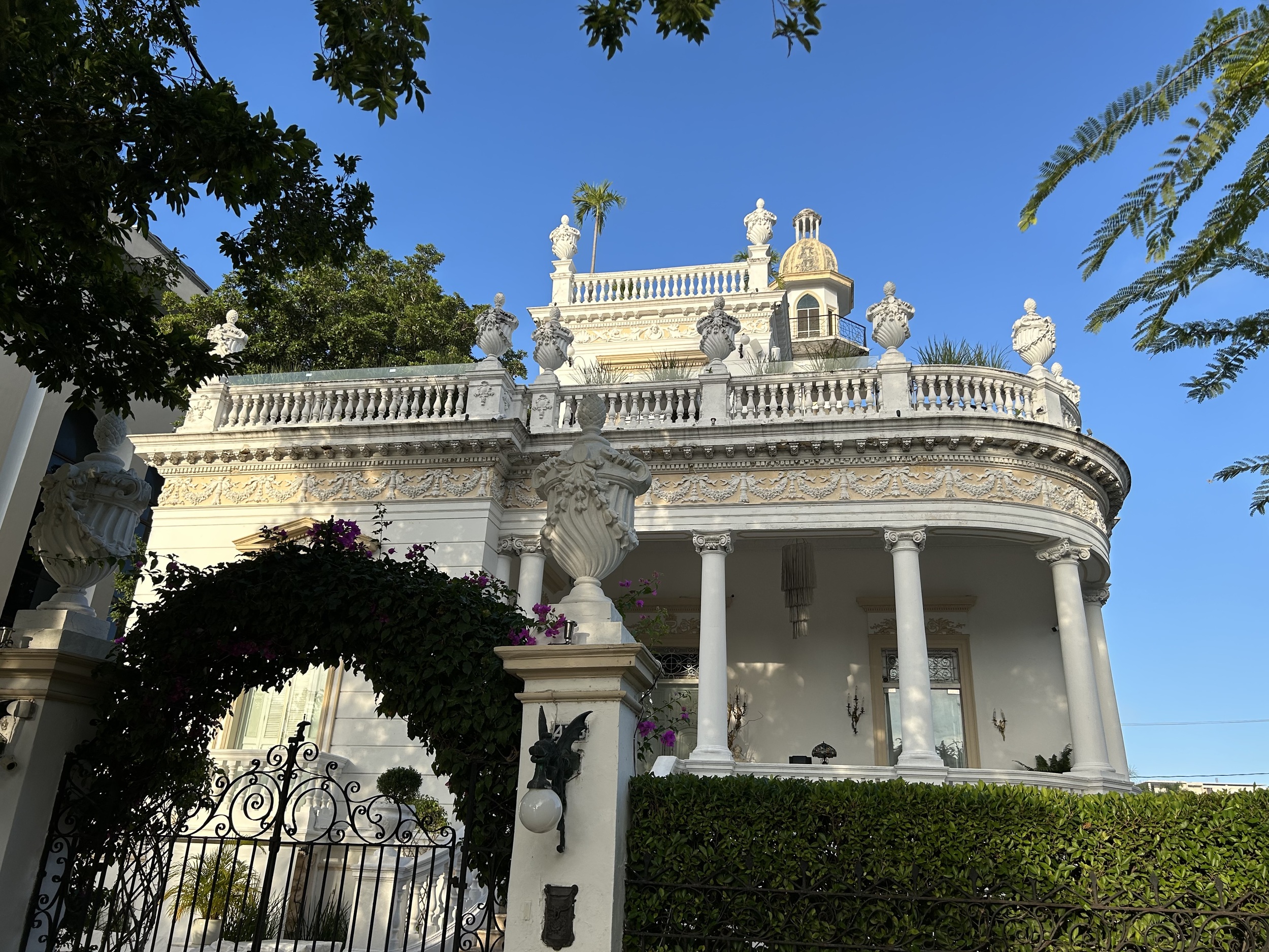 Casa del Minarete (Dom z Minaretem) z przełomu XIX i XX stulecia. Półkolisty portyk kolumnowy i charakterystyczna wieżyczka – tzw. minaret – odzwierciedlają modę na eklektyzm i orientalizujące detale, inspirowane architekturą europejską epoki Belle Époque.
