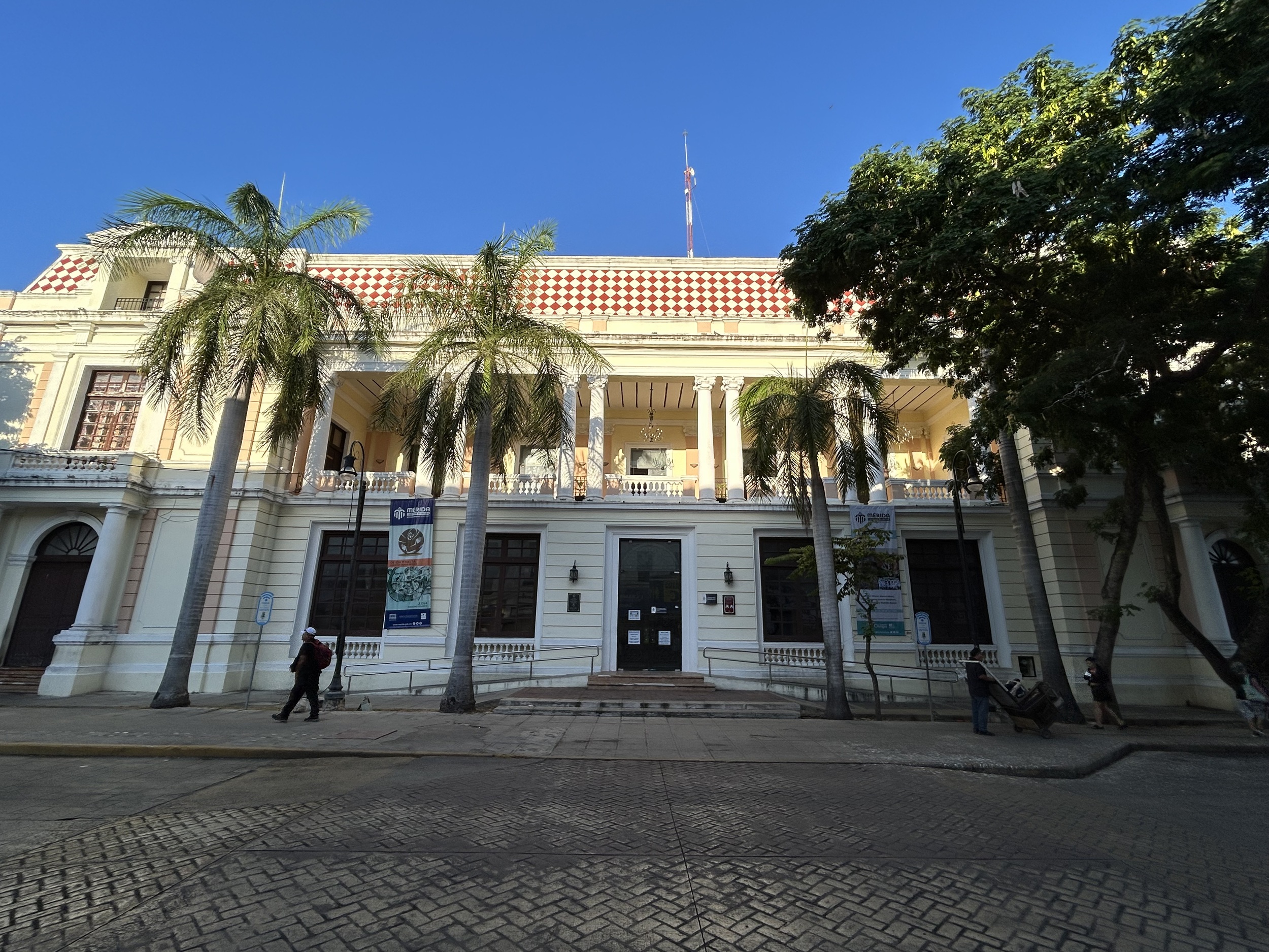 Palacio Municipal de Mérida, siedziba władz miejskich, wzniesiona została w latach 1734–1736 jako obiekt o funkcjach użytkowych, związanych z administracją miejską i zapleczem gospodarczym miasta kolonialnego. Dwukondygnacyjna, arkadowa fasada z wieżą zegarową jest efektem przekształceń z przełomu XIX i XX wieku, kiedy Mérida przeżywała intensywny rozwój związany z handlem włóknem henequenowym (Agave fourcroydes). Dochody płynące z „zielonego złota Jukatanu” – vide Sotuta de Peón – umożliwiły nadanie ratuszowi bardziej reprezentacyjnego charakteru i dostosowanie go do ambicji miasta aspirującego do roli nowoczesnej stolicy regionalnej.