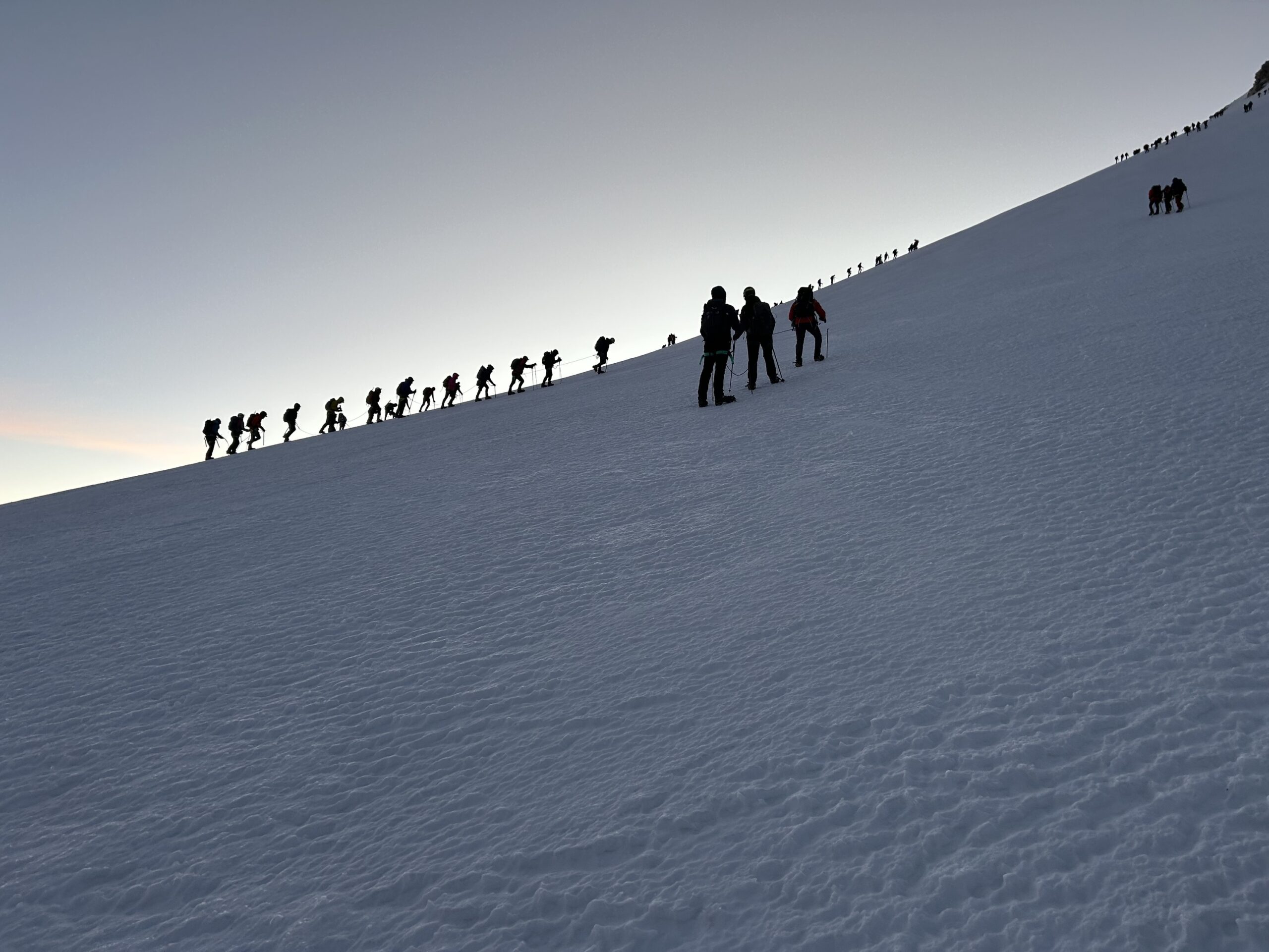 W pamięć zapada trzygodzinna walka na lodowcu. W rakach koszykowych, gdy każdy krok musi być uważnie postawiony, by nie pociągnąć w dół współtowarzyszy liny. Męczące, niekończące się strome podejście, bez możliwości choćby krótkiego odpoczynku. Rytm „krok–oddech” musi być żelazny, połączony z łapaniem powietrza, którego brakuje. Jednych zatyka, inni walczą z sennością lub innego rodzaju dolegliwościami.