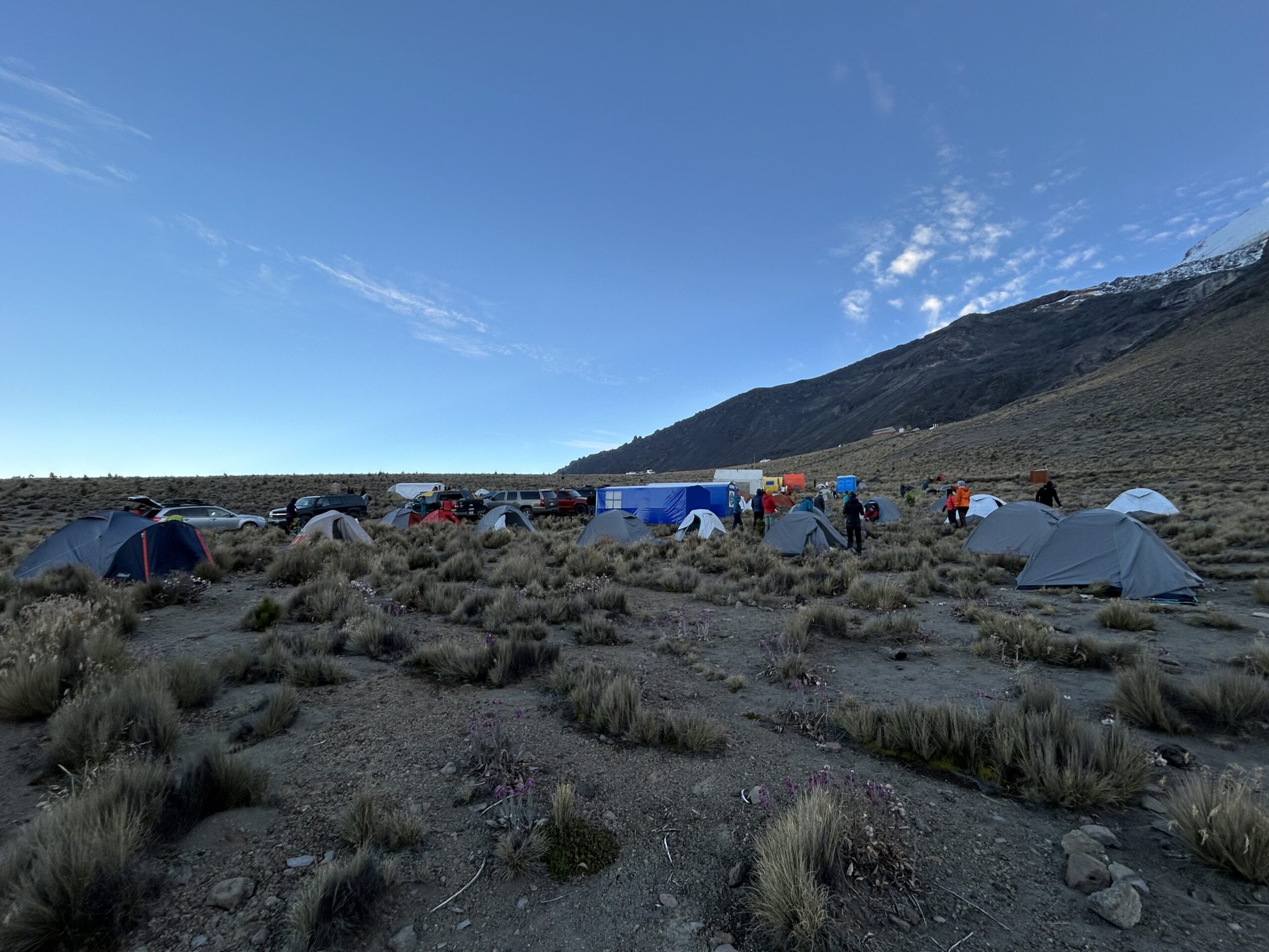 Wysoko położone pole namiotowe Piedra Grande (4250 m) pełni rolę Base Campu. Nazywanie jej „hut” albo „refugio” jest odrobinę na wyrost. Luksus, przynajmniej namioty nie są jeden na drugim.
