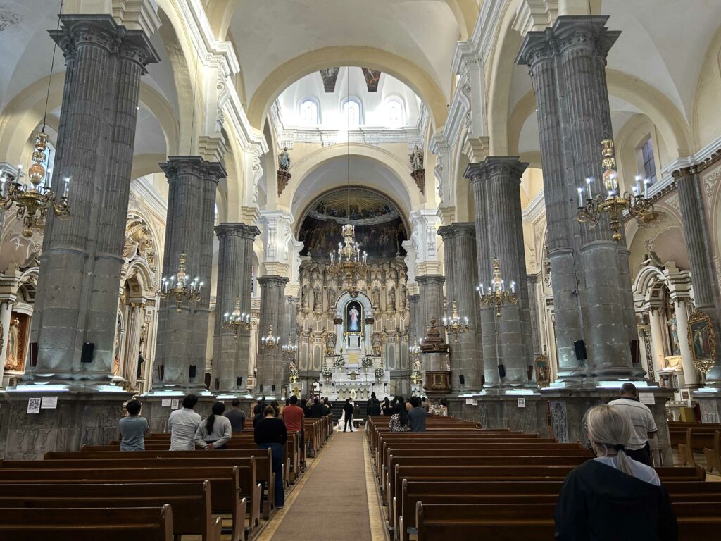 Centralnym elementem wnętrza jest cyborium nad ołtarzem głównym, zaprojektowane pod koniec XVIII wieku przez Manuela Tolsá. Zamiast tradycyjnego, przylegającego do ściany retabulum, zdecydowano się na wolnostojącą formę, inspirowaną architekturą rzymską.