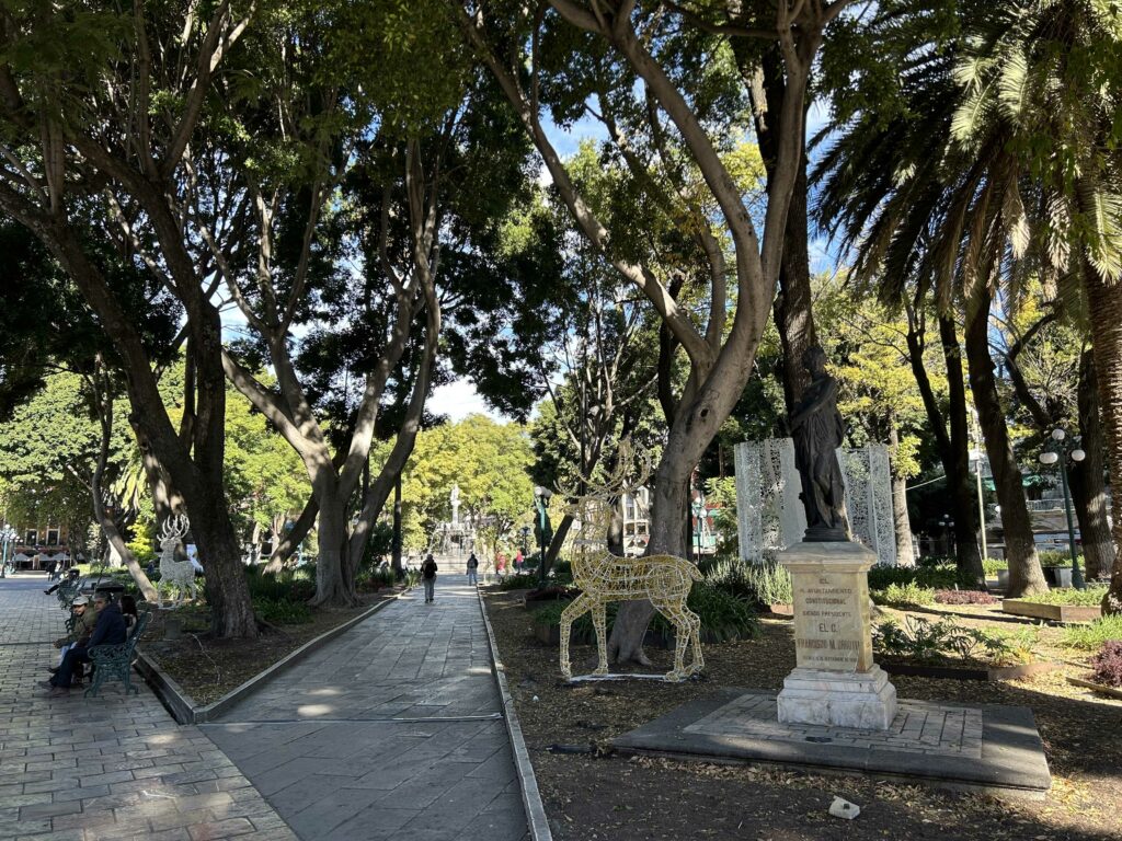 Przy zwartej, kamiennej zabudowie historycznej Puebli przestrzenie zielone nigdy nie były elementem dominującym, lecz raczej luksusem starannie dozowanym. Dopiero w XIX i XX wieku zaczęto świadomie wprowadzać publiczne enklawy zieleni, inspirowane europejskimi ideami higieny miejskiej i nowoczesnego urbanizmu, pełniące funkcję odpoczynku i regulacji klimatu w gęsto zabudowanym centrum. Zieleń stała się wówczas elementem polityki zdrowotnej miasta — miejscem wytchnienia, ale też sposobem łagodzenia skutków wysokiego nasłonecznienia i nagrzewania się kamiennej tkanki urbanistycznej.
