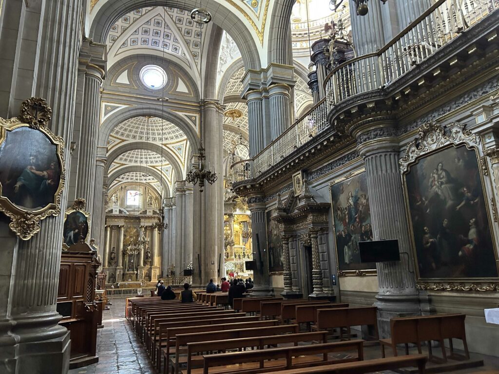 Po przeciwnej stronie Zócalo de Puebla wznosi się Catedral de Puebla, dominant architektoniczny i symbol miasta. Budowę rozpoczęto w 1575 r., z inicjatywy władz kościelnych Nowej Hiszpanii, jako projekt o ambicjach wykraczających poza skalę regionalną, a ukończono dopiero w połowie XVII wieku, co czyni ją jednym z najambitniejszych projektów sakralnych Nowej Hiszpanii.