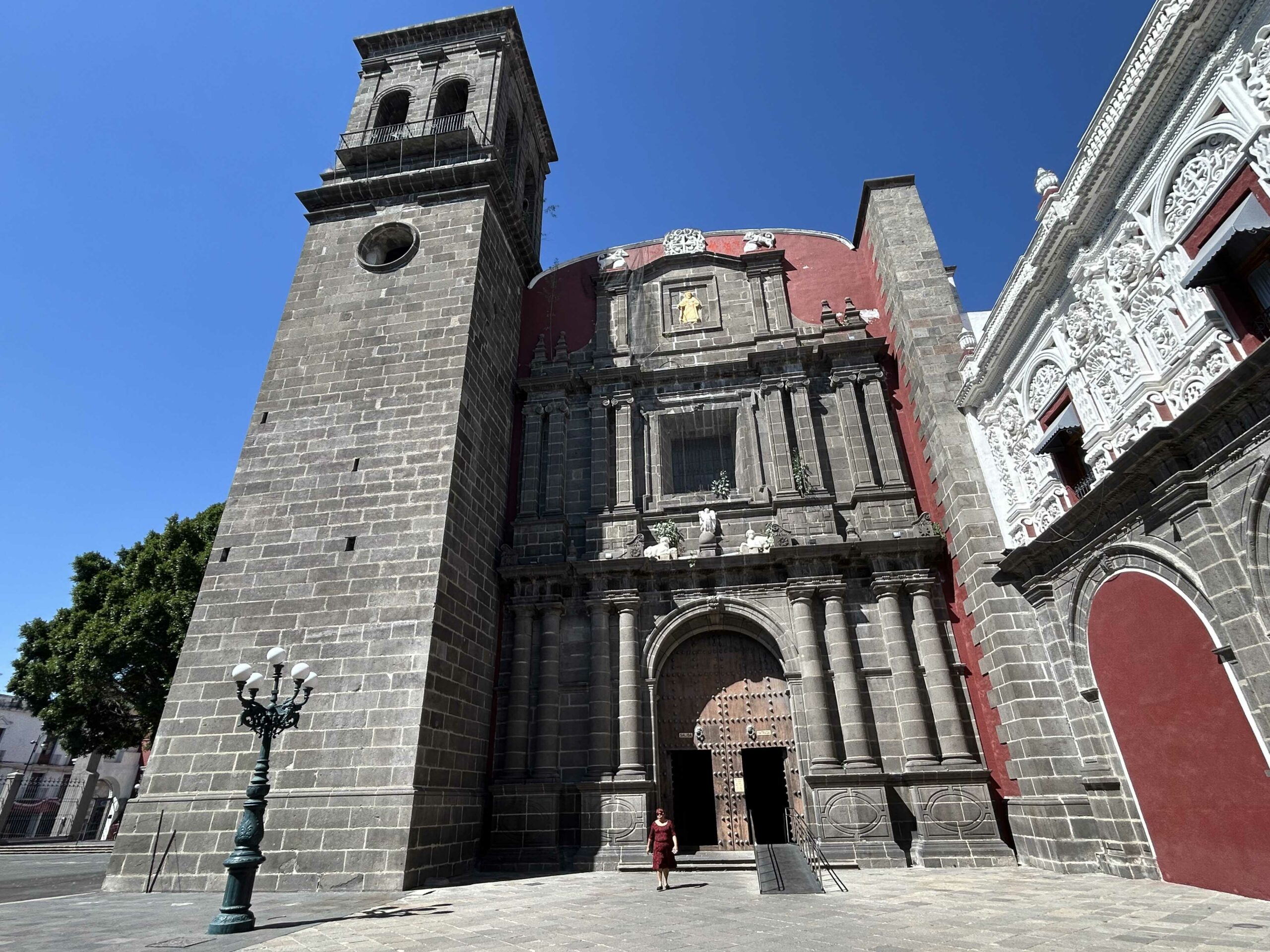 Po przeciwnej stronie Zócalo de Puebla wznosi się Catedral de Puebla, dominant architektoniczny i symbol miasta. Budowę rozpoczęto w 1575 r., z inicjatywy władz kościelnych Nowej Hiszpanii, jako projekt o ambicjach wykraczających poza skalę regionalną, a ukończono dopiero w połowie XVII wieku, co czyni ją jednym z najambitniejszych projektów sakralnych Nowej Hiszpanii.