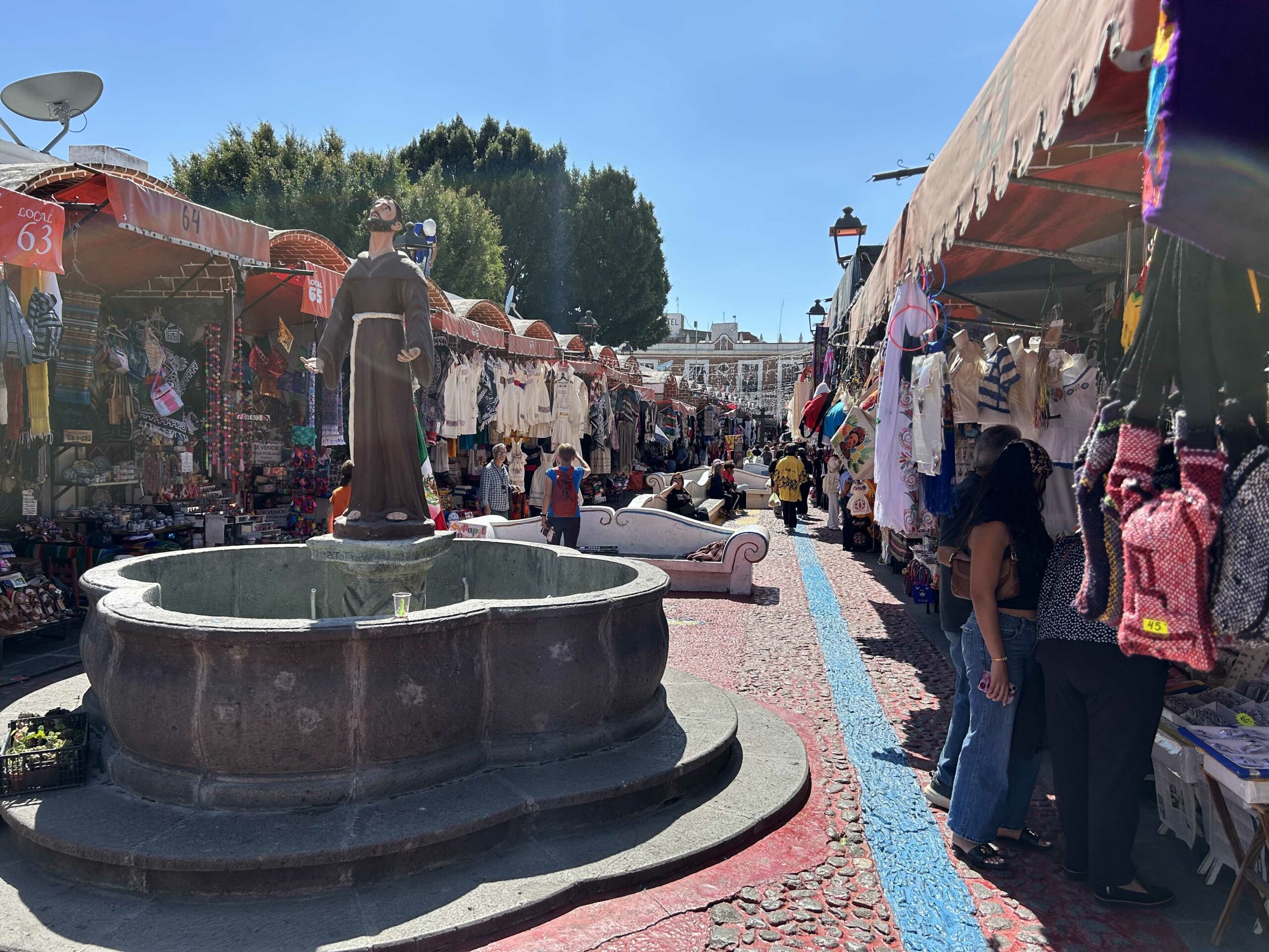 Kolonialna architektura Puebli nie jest jednolita ani surowa — ukształtował się barok pueblański, lecz miasto od dawna łączy monumentalne formy z intensywną kolorystyką i życiem ulicznym. Przestrzenie publiczne są tu stale reinterpretowane: przez handel, sztukę, sezonowe dekoracje i spontaniczną aktywność mieszkańców. Historia nie zamyka się w muzeum, lecz funkcjonuje jako żywe tło codzienności.