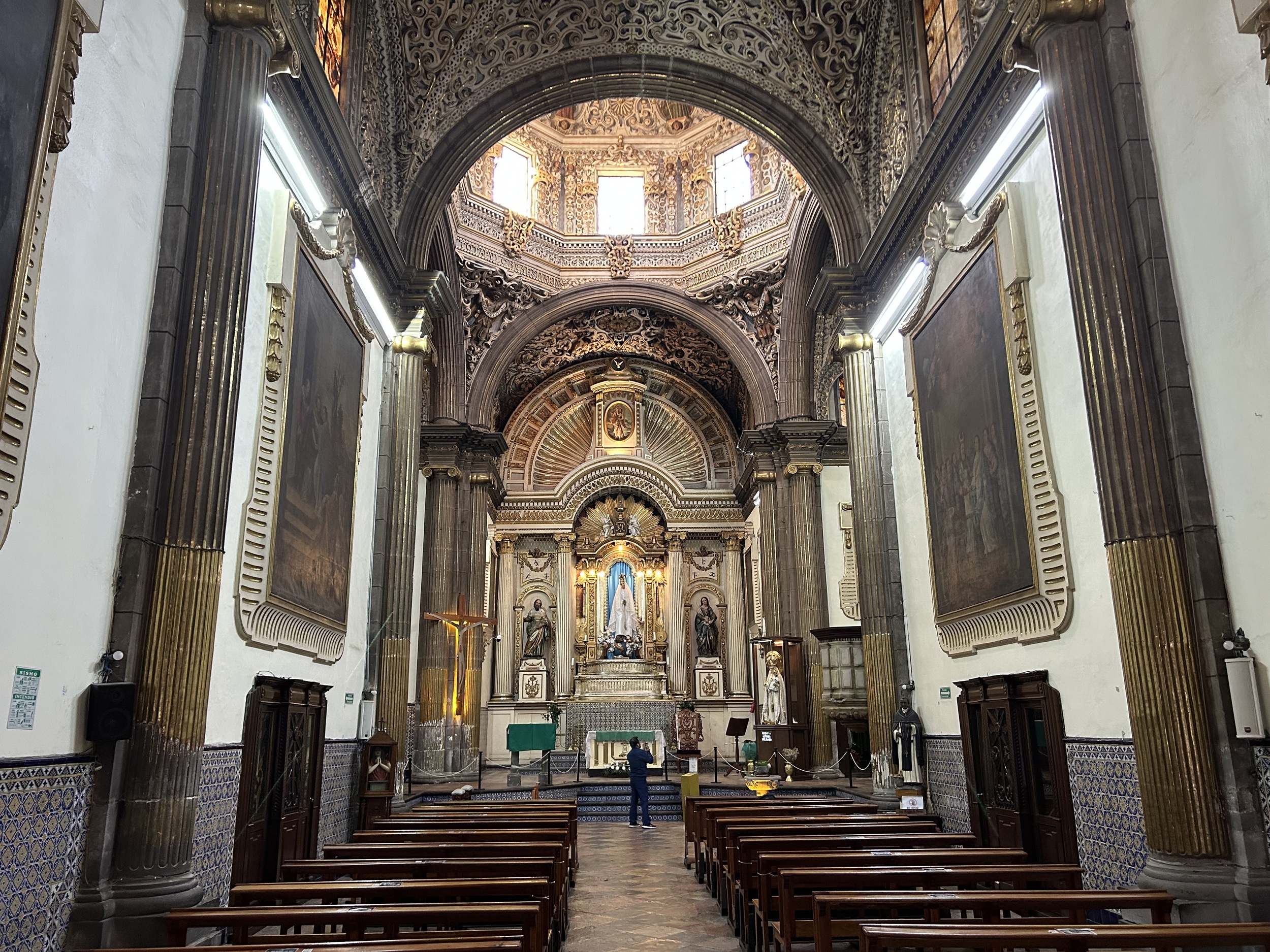 Kaplica Różańcowa (Capilla del Rosario), ukończona w 1690 r., uchodzi za najdoskonalszy przykład baroku nowohiszpańskiego i już w XVII wieku określana była mianem „ósmego cudu świata”. Jej wnętrze niemal w całości pokrywa złocona dekoracja stiukowa, wykonana z mieszanki gipsu i złota, tworząca jednolitą, pulsującą powierzchnię symboli maryjnych, anielskich i teologicznych.