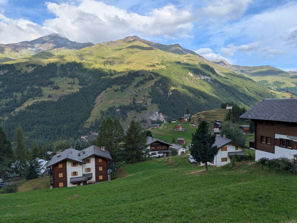 Dolina Val d’Anniviers – spokojna, zielona i pełna małych, tradycyjnych wiosek i osad o typowo pasterskim rodowodzie. W większości wyjęte z dawnego kantonalnego kalendarza, w którym czas mierzy się nie godzinami, lecz porami dnia i światłem słońca. W oddali rozrzucone malownicze miejscowości Ayer, Mission i dalsze Saint-Luc.