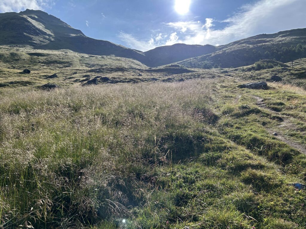 Ścieżka wspina się coraz wyżej, mijając kilka kamiennych zabudowań na zboczu doliny. Dziś puste i milczące, dawniej dawały schronienie pasterzom i zwierzętom jucznym w drodze na wysokie hale. Jeszcze w połowie XX wieku trwała tradycja sezonowych wędrówek ludzi i stad między doliną a wyższymi partiami gór. W czerwcu zwierzęta prowadzono na hale, w sierpniu na najwyższe pastwiska, by we wrześniu wrócić w dolinę na święto désalpe.
