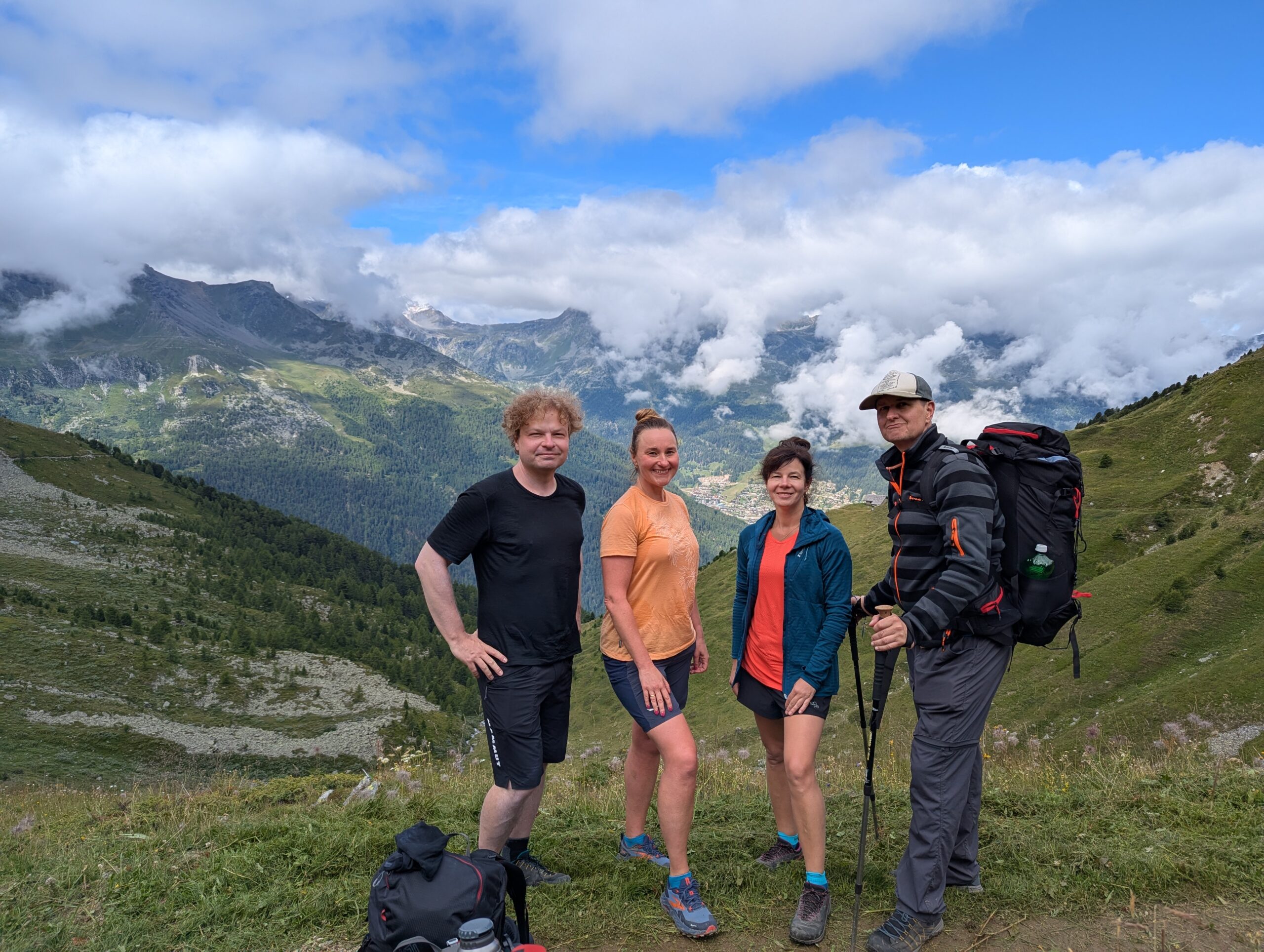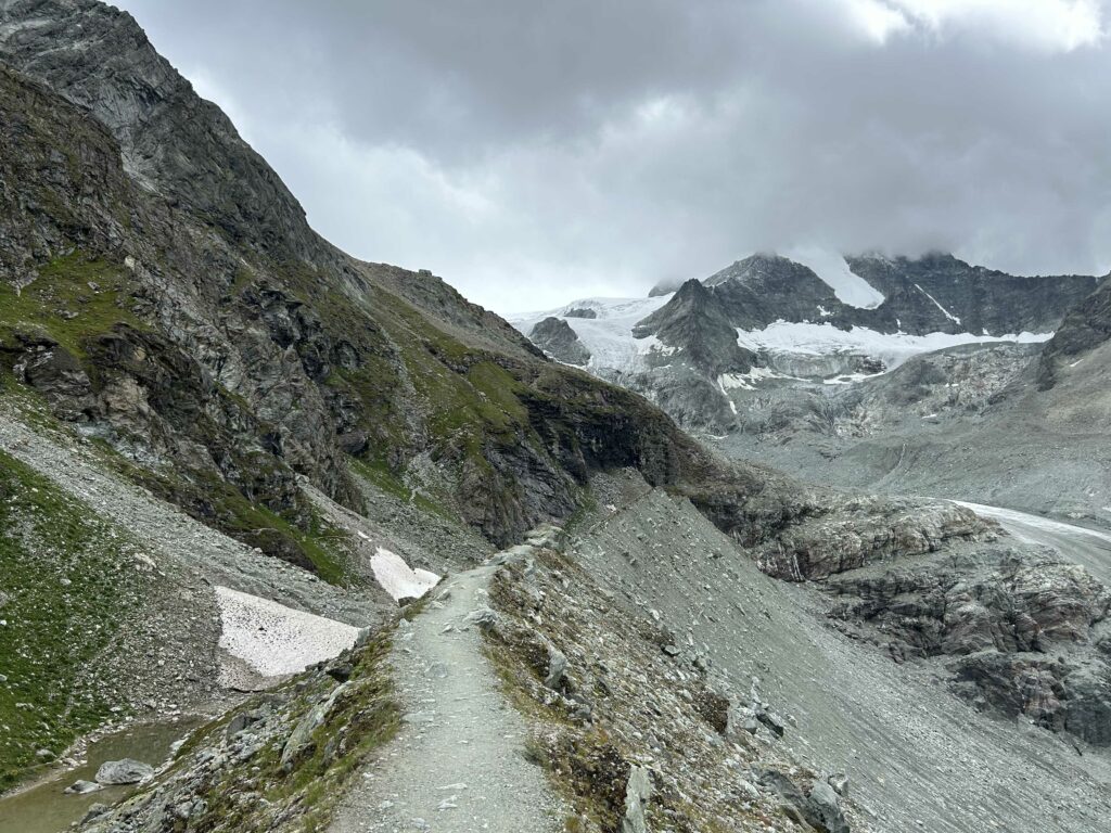 Zamiast klasycznego odcinka Walker’s Haute Route prowadzącego z Zinal prosto do Gruben przez Forclettę (2874 m), wybieramy wariant „balkonowy” – z Zinal trawersujemy północnym zboczem Val d’Anniviers w stronę Hotelu Weisshorn (2337 m), zmierzając do Cabane Bella Tola (2346 m). Pozwala to w atrakcyjny sposób wydłużyć trekking o jeden dzień.