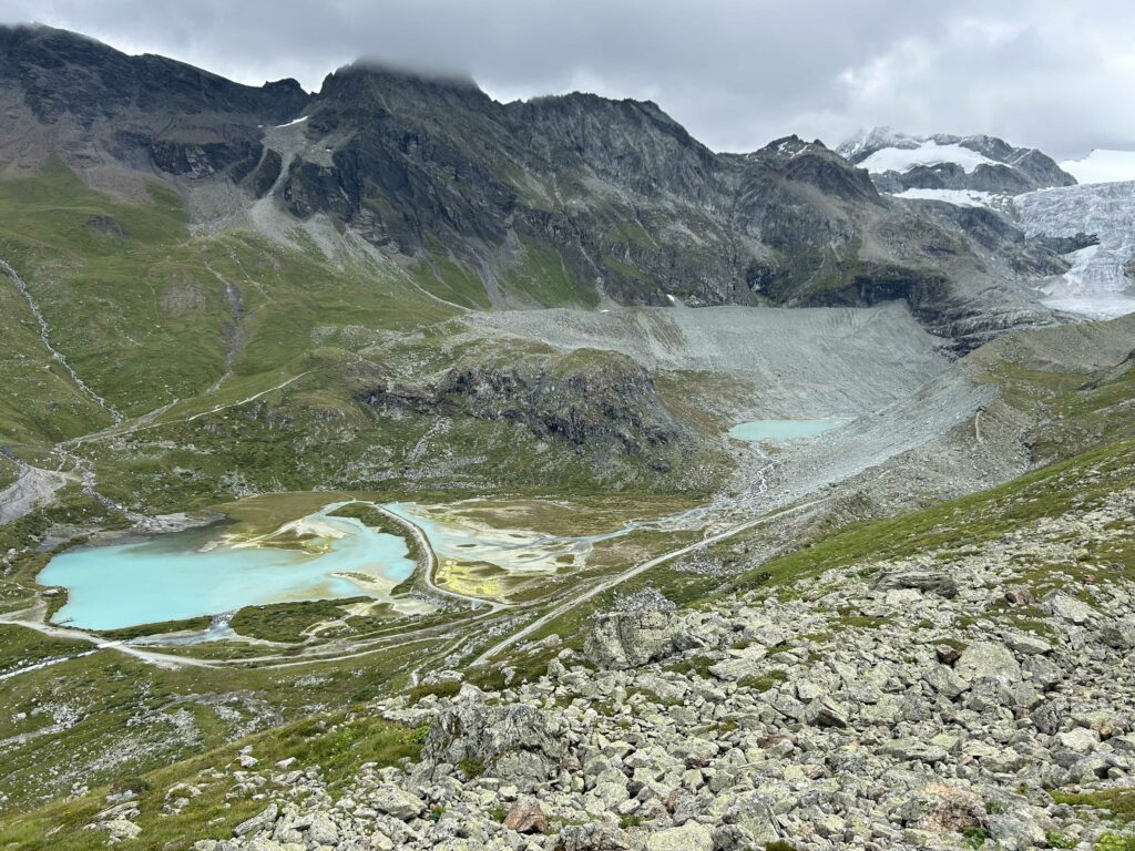 Po kilku godzinach wędrówki szlak osiąga przełęcz Col du Tsaté (2868 m), klasyczne, wąskie siodło oddzielające Val d’Hérens od doliny Moiry. Nazwa wywodzi się z lokalnego dialektu franko-prowansalskiego (patois valaisan). Słowo „mouere” lub „mouer” oznacza mokradło, podmokłą dolinę, miejsce przesiąknięte wodą. Etymologia trafnie oddaje charakter tej krainy – Val de Moiry od wieków kształtowana jest przez wodę, lód i kamień.