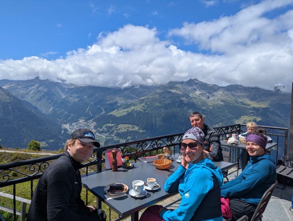 Do hotelu można było dotrzeć konno lub pieszo, a jego goście – głównie brytyjscy i francuscy podróżnicy – traktowali pobyt jako część „Grand Tour”, duchowej i intelektualnej podróży po Europie. Weisshorn przyciągał uczonych, artystów i alpinistów – gościli tu m.in. geolodzy, kartografowie i pisarze opisujący nowy, nieznany świat gór. Z tarasu rozciąga się panorama doliny Anniviers z widokiem na Weisshorn (4506 m), Bishorn (4153 m), Zinalrothorn (4221 m) i Dent Blanche (4357 m). W dni o idealnej przejrzystości powietrza można jakoby dostrzec nawet sylwetkę Matterhornu, ku któremu zmierzamy.